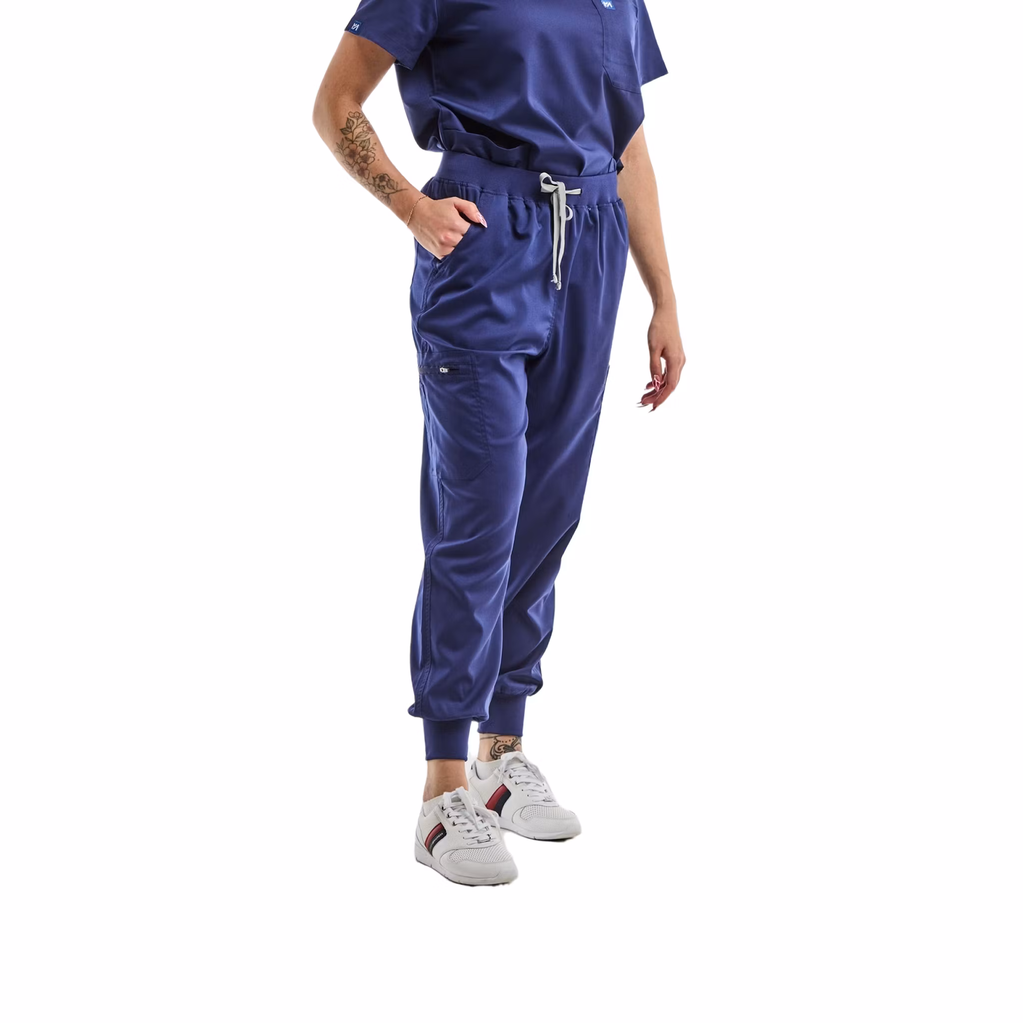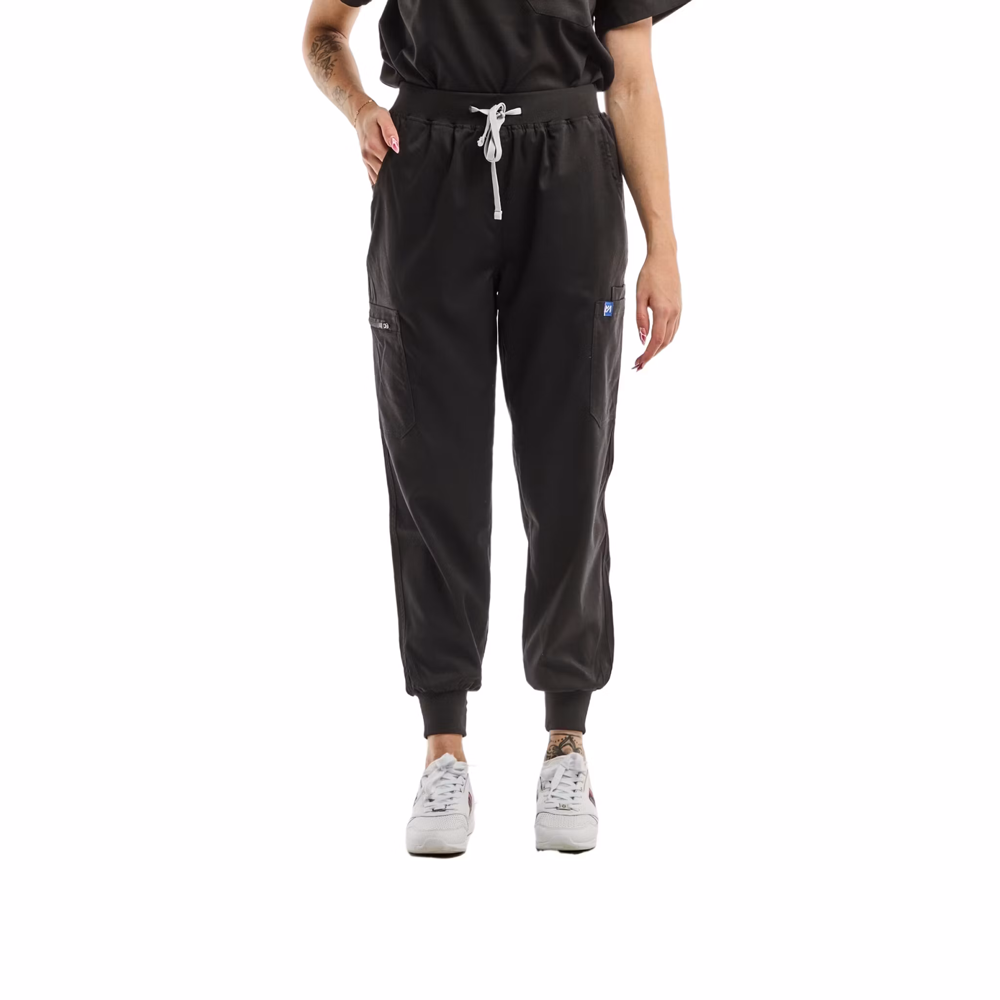 Joggerdesignen kombinerar praktisk funktion med ett stilrent uttryck och gör byxorna enkla att matcha med medicinska tunikor och överdelar. Ett bra val för dig som vill ha arbetsbyxor som känns bekväma, sitter stadigt och ger full rörelsefrihet genom hela arbetsdagen.