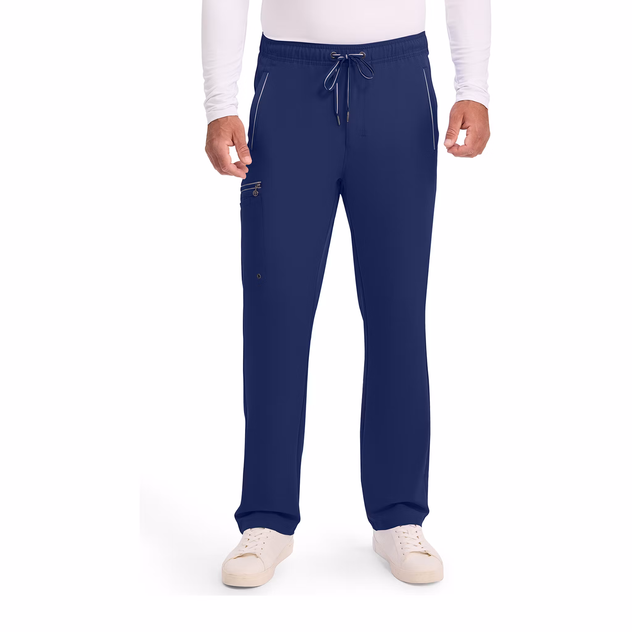 Noah är en modern vårdbyxa med stilren design och bekväm passform. Byxan har rak benmodell och medelhög midja med elastisk resår och smidig pull-on-stängning för maximal komfort under hela arbetsdagen. Det mjuka fyrvägsstretch-materialet är tillverkat av återvunnen polyester och ger både rörelsefrihet, slitstyrka och en lätt, luftig känsla.