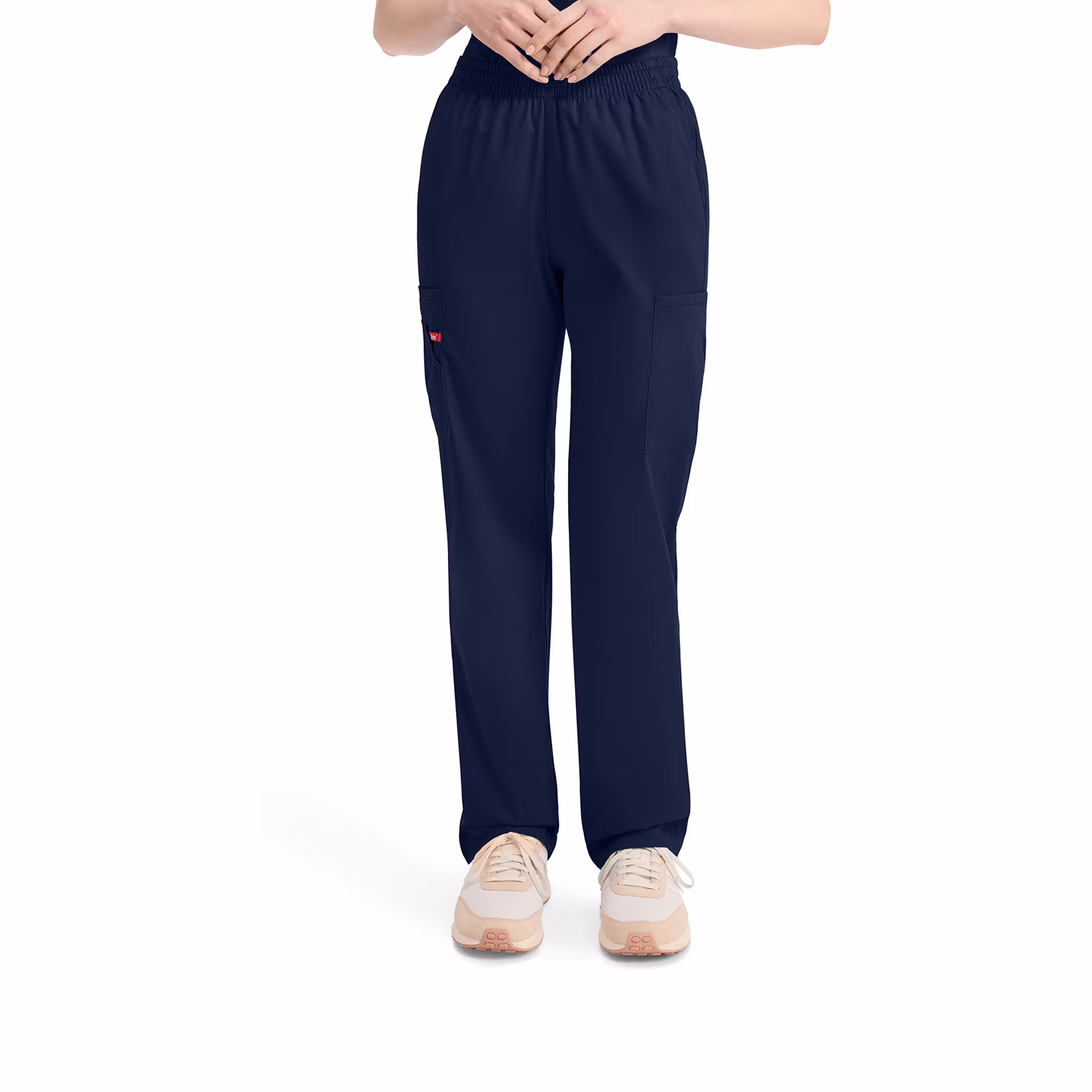 En funktionell vårdbyxa med modern klassisk passform, normal midja och avsmalnande ben. Den elastiska linningen runtom ger en bekväm passform och gör byxan enkel att ta på och bära under långa arbetspass. Byxan är utrustad med flera praktiska fickor, inklusive cargofickor på båda benen med invändig stretchficka samt instrumentögla för smidig förvaring. Framfickor med vinklad öppning ger enkel åtkomst, medan den avsmalnande passformen skapar ett modernt och professionellt uttryck.