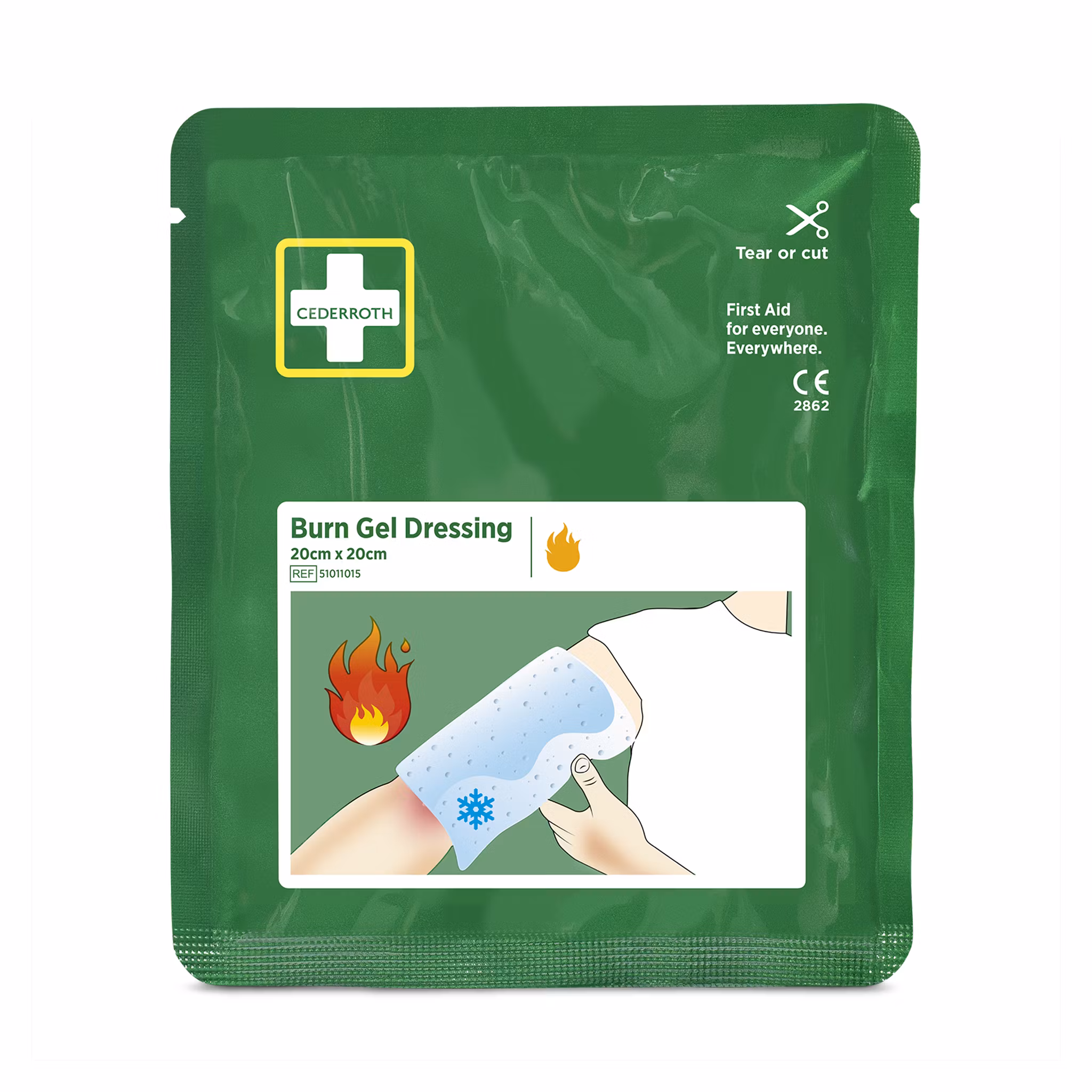 Steril brännskadekompress för snabb avkylning och effektiv smärtlindring vid första och andra gradens brännskador. Lämplig för skador upp till 20 × 20 cm. Den kylande effekten hjälper till att hindra att skadan tränger djupare ner i huden. För större områden kan flera kompresser användas samtidigt. Enkel att använda med tydliga instruktioner direkt på förpackningen.