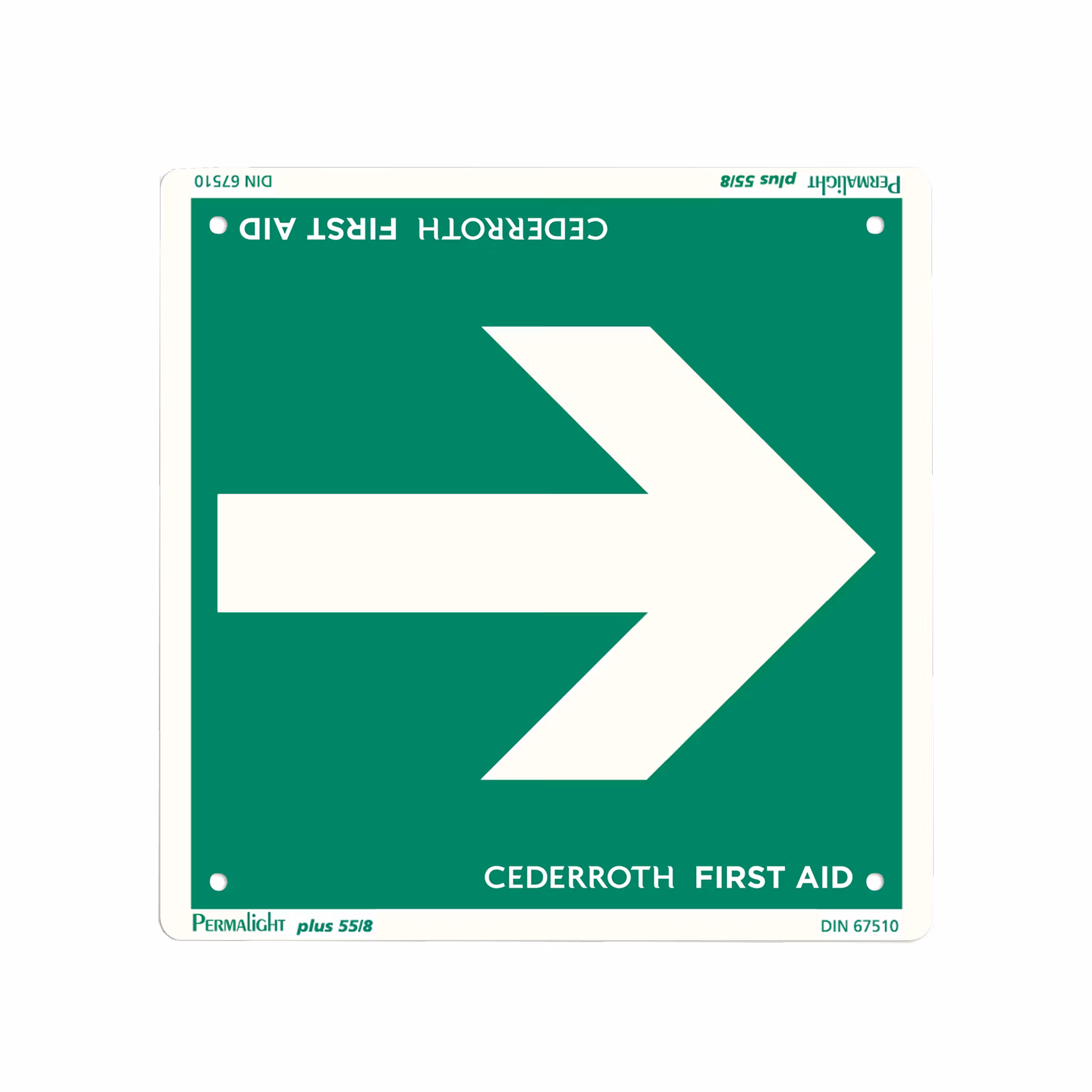 Efterlysande skylt i slitstark hårdplast som tydligt markerar utrymningsväg. Skylten laddas upp av dagsljus eller annan ljuskälla och lyser i mörker vid strömavbrott eller nödsituation. Lämplig för arbetsplatser, offentliga miljöer och lokaler där tydlig vägledning krävs vid evakuering.