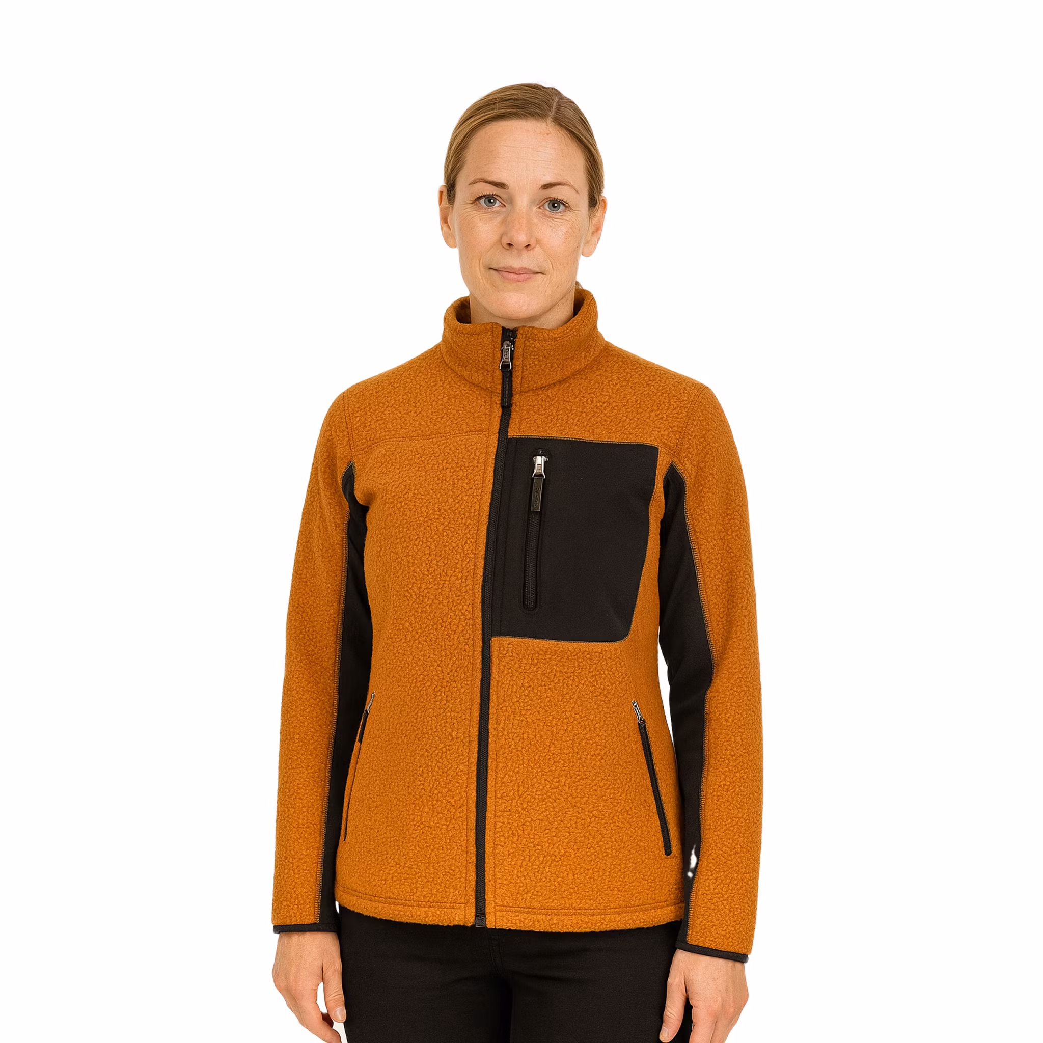 Värmande och mjuk pilefleecejacka med feminin passform och modern design. Tillverkad i 100 % återvunnen polyester med kontrasterande paneler i bondat material för extra slitstyrka.