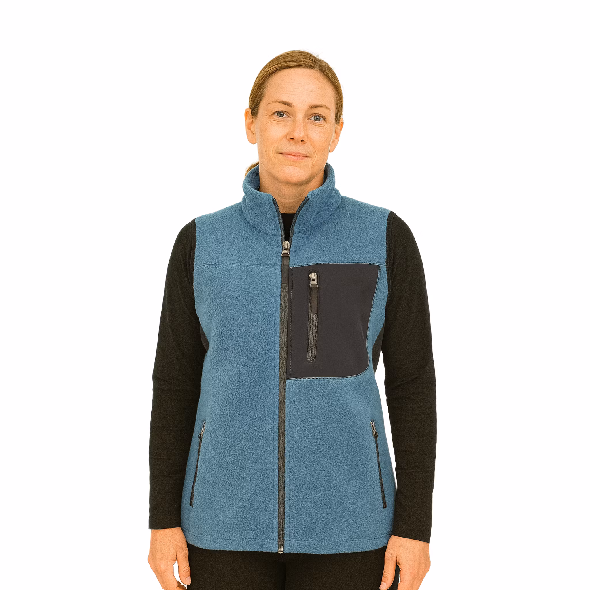 Elegant och funktionell pilefleeceväst med feminin passform som ger värme och rörelsefrihet i alla arbetssituationer. Tillverkad i 100 % återvunnen polyester med vattenavstötande behandling som gör den praktisk både på jobbet och till vardags.
