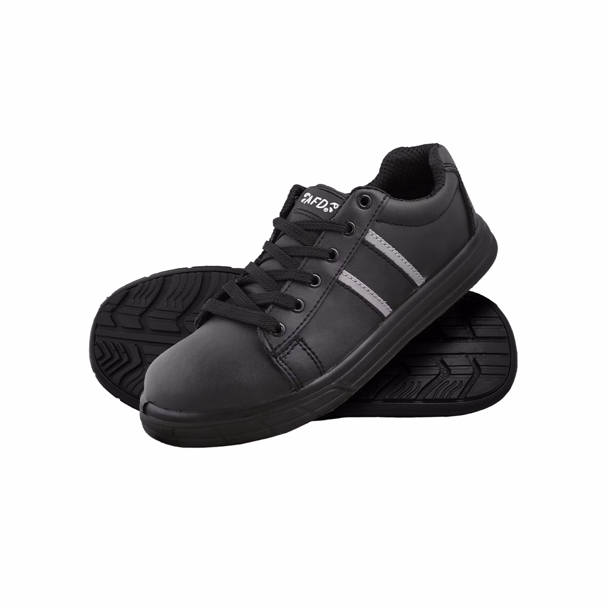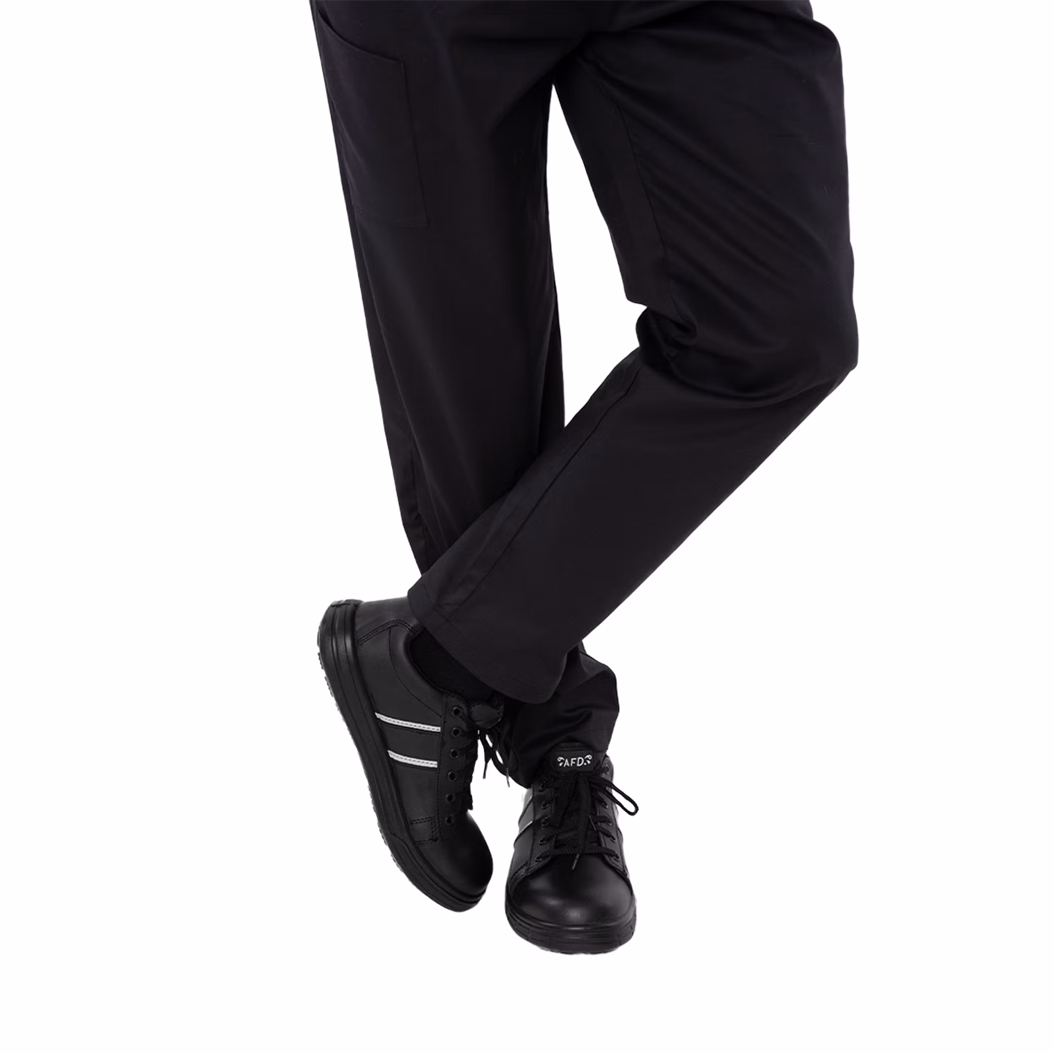 Ett par slitstarka och bekväma skyddsskor i unisexmodell, designade för professionell användning inom kök och service. Skorna har ovandel i läder och andningsaktivt meshfoder som håller fötterna svala under långa arbetspass. Utrustade med stålhätta som klarar 200 joule, halkskydd enligt SRC-standard och antistatiska egenskaper. En grå reflexremsa ger extra synlighet.