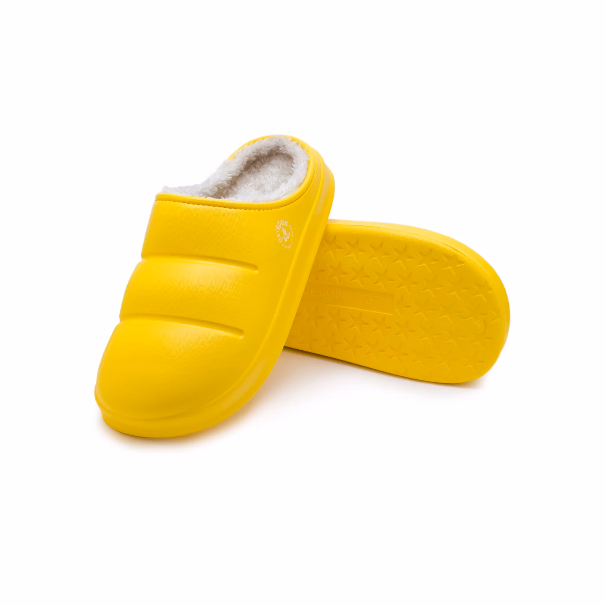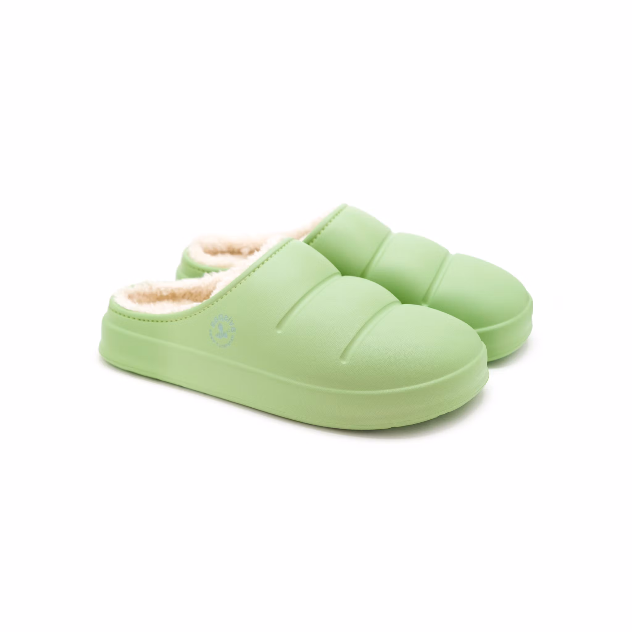 En varm och mjuk vintertoffel med låg häl och modern, minimalistisk design. Tillverkad i Spanien av veganskt och miljövänligt EVA-material, vilket gör den ultralätt, vattentålig och enkel att rengöra.