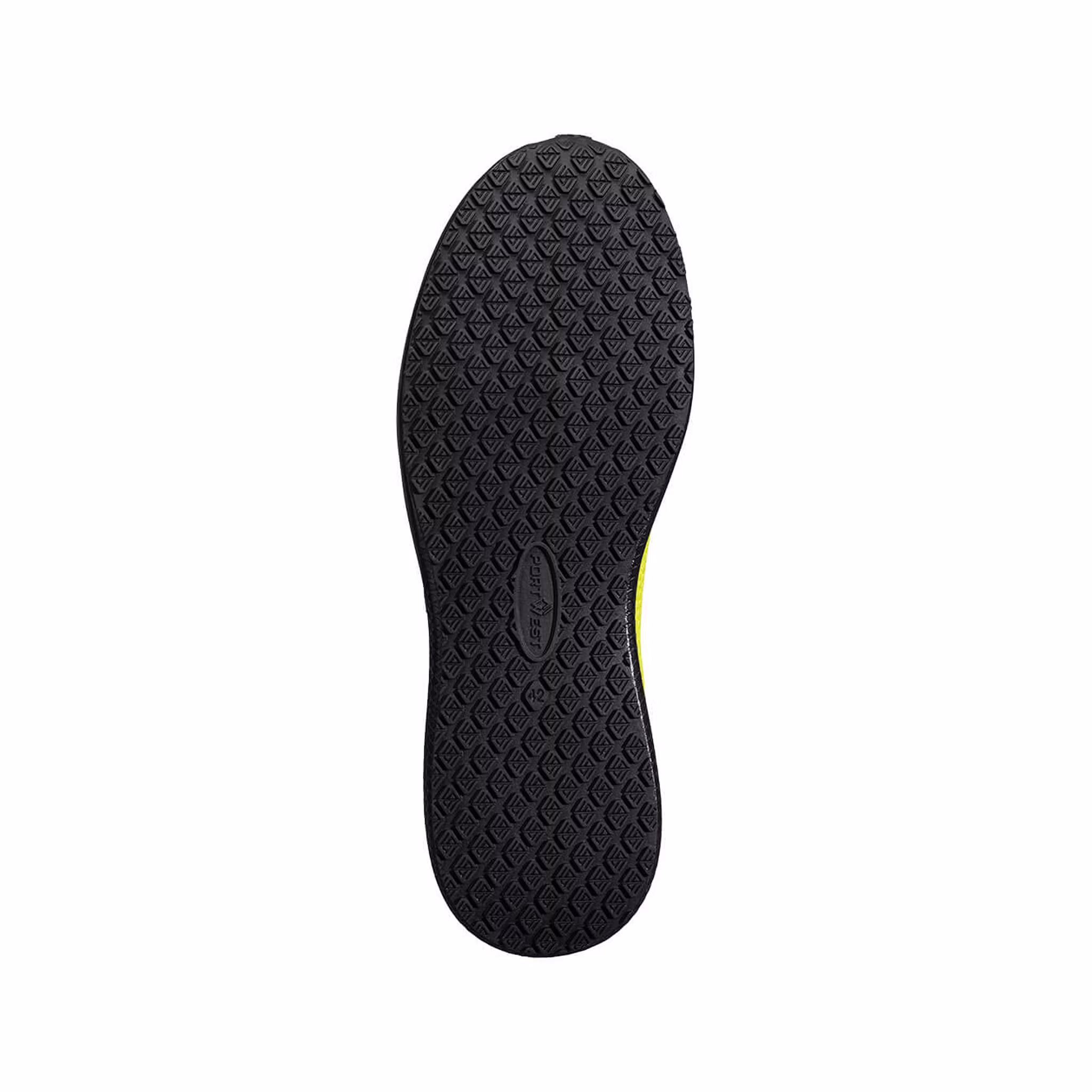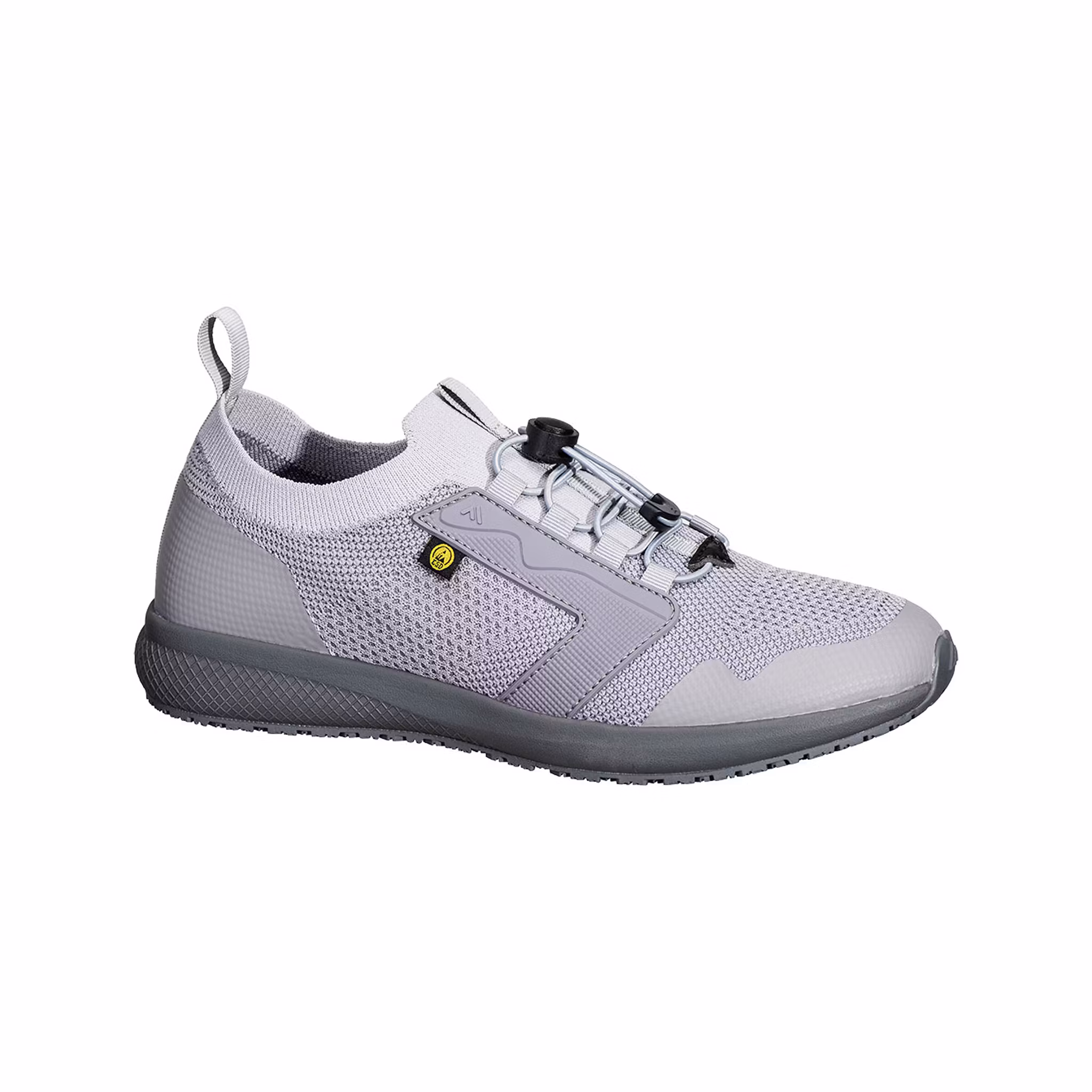 Den metallfria konstruktionen gör skon lätt och smidig, medan den superdämpade fotbädden effektivt minskar trötthet under arbetsdagen. Den justerbara snörningen med spänne ger stabil passform, och de praktiska dragflikarna gör skon enkel att ta på och av. Den halksäkra yttersulan i EVA/gummi ger säkert grepp även på släta golv, medan ESD-skyddet skyddar både användaren och känslig elektronisk utrustning.