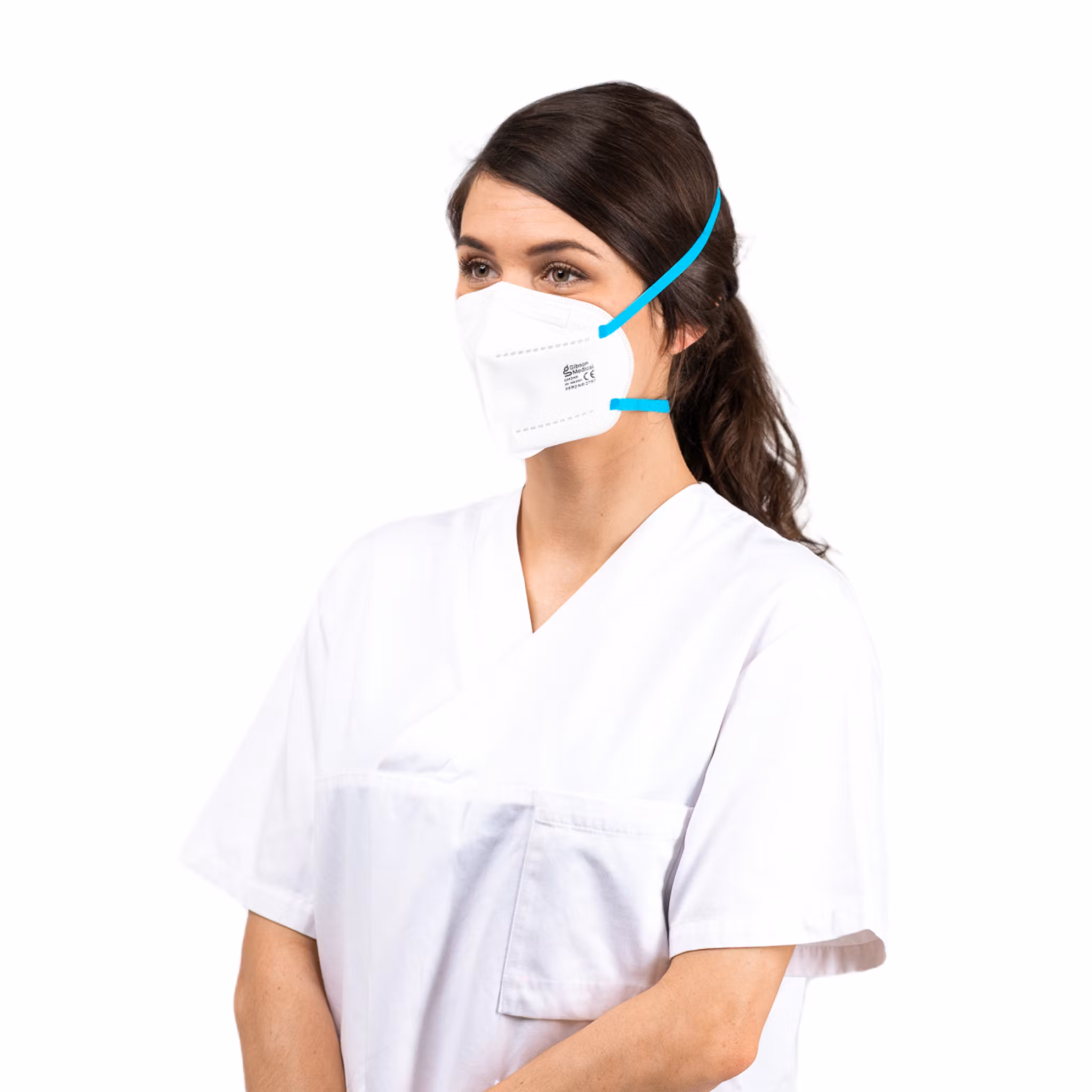 Ett vätskeresistent andningsskydd av FFP2-klass som ger mycket hög skyddsnivå mot luftburna partiklar, droppar och aerosoler. Utformat för medicinsk personal och yrkesgrupper med höga hygienkrav. Filtrerar minst 95 % av partiklar större än 0,6 µm och skyddar både användaren och omgivningen.