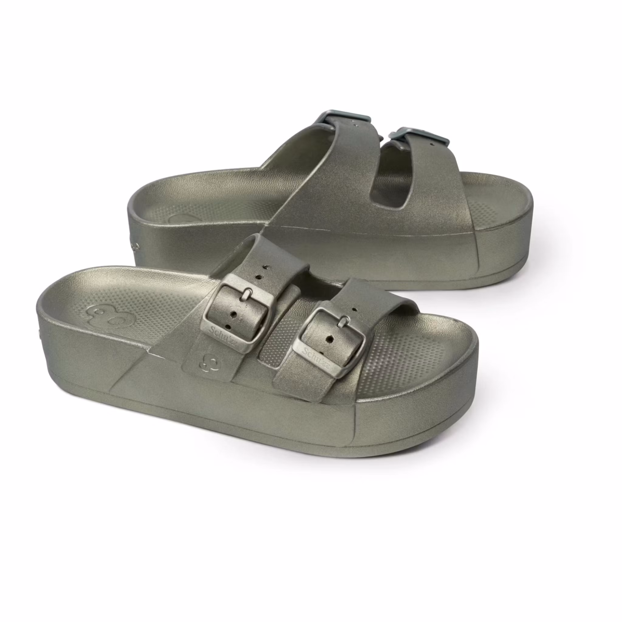 Jeannette är en modern sandal med kilklack som kombinerar stabilitet och komfort i en stilren design. Den metalliska ytan ger ett uppdaterat uttryck som passar både arbete och lediga tillfällen. Tillverkad i slitstarkt PVC-material med två justerbara remmar som gör att passformen enkelt kan anpassas efter foten. Den 4 cm höga kilklacken ger en lätt upphöjd siluett samtidigt som komforten bevaras under hela dagen.
