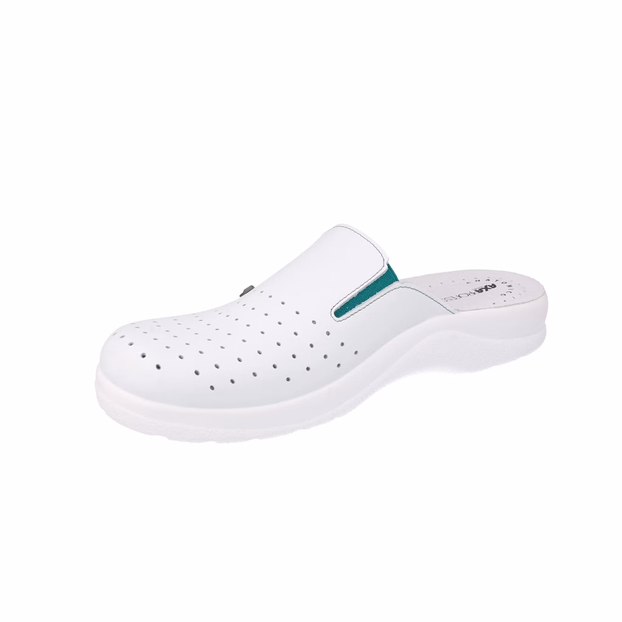 Bekväma och lätta arbetstoppor i sanitetsmodell, 100% tillverkade i Italien, framtagna för professionellt bruk inom vård, service och andra miljöer där komfort och hygien är avgörande. Skorna har en vadderad lädersula ända fram till tån, vilket ger effektiv stötdämpning och minskar skadliga vibrationer i lederna vid gång och stående arbete.