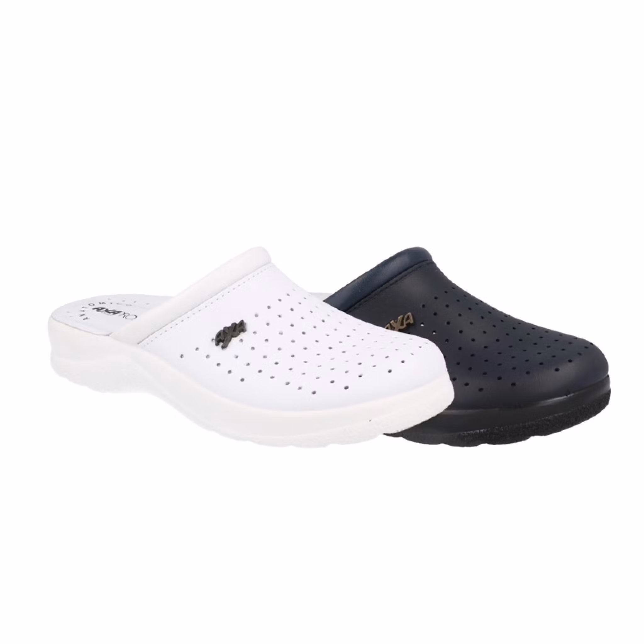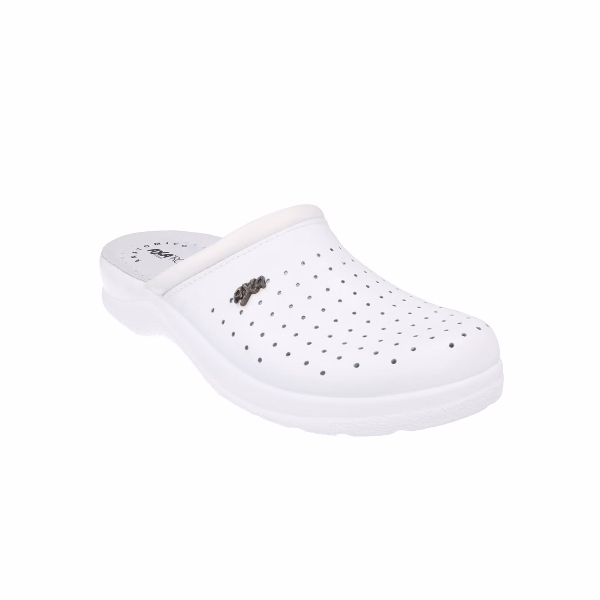 Bekväma och lätta vård- och arbetstofflor i hygienisk träsko-modell, 100 % tillverkade i Italien. Tofflorna har en vadderad lädersula ända fram till tårna som främjar fotens välbefinnande vid långa arbetsdagar.