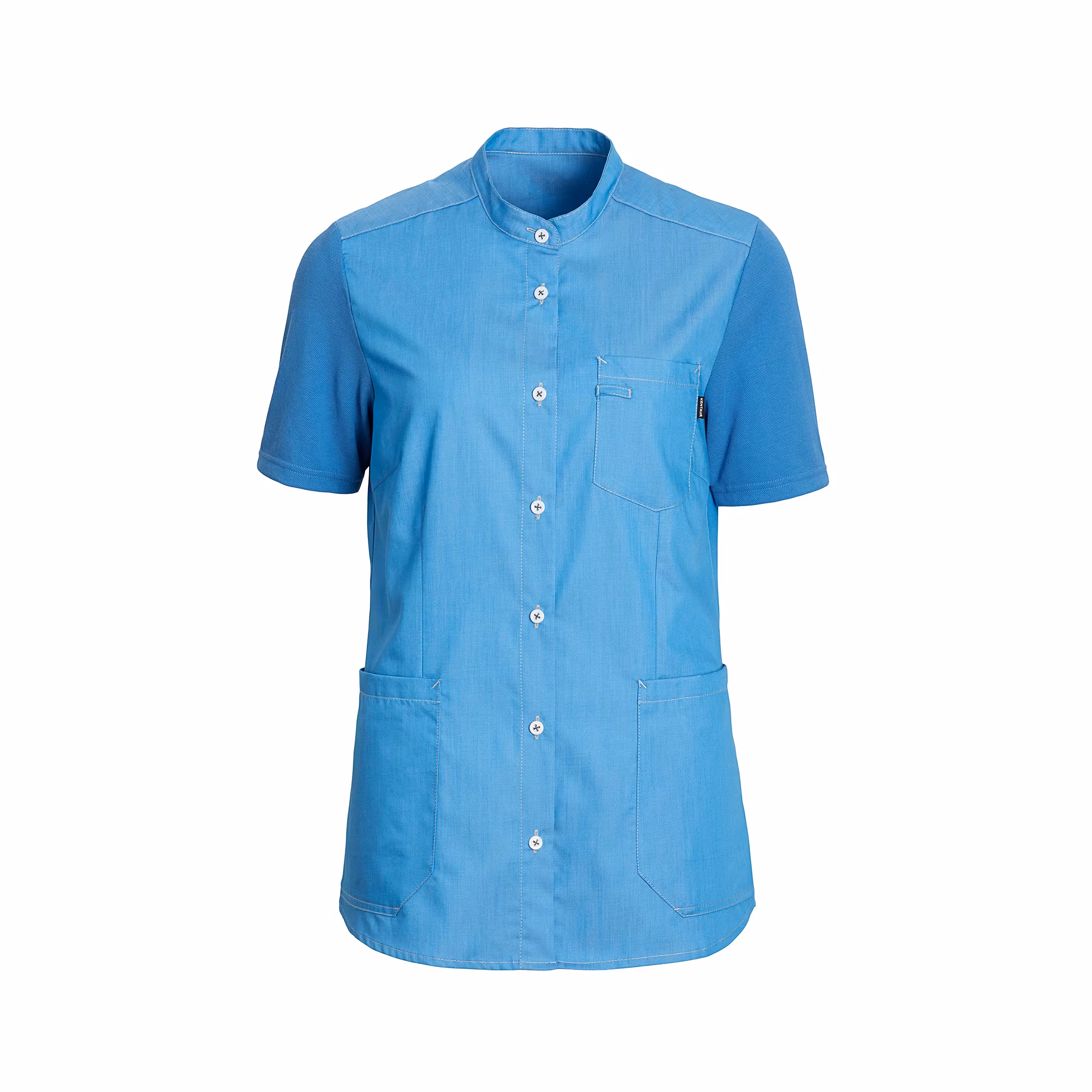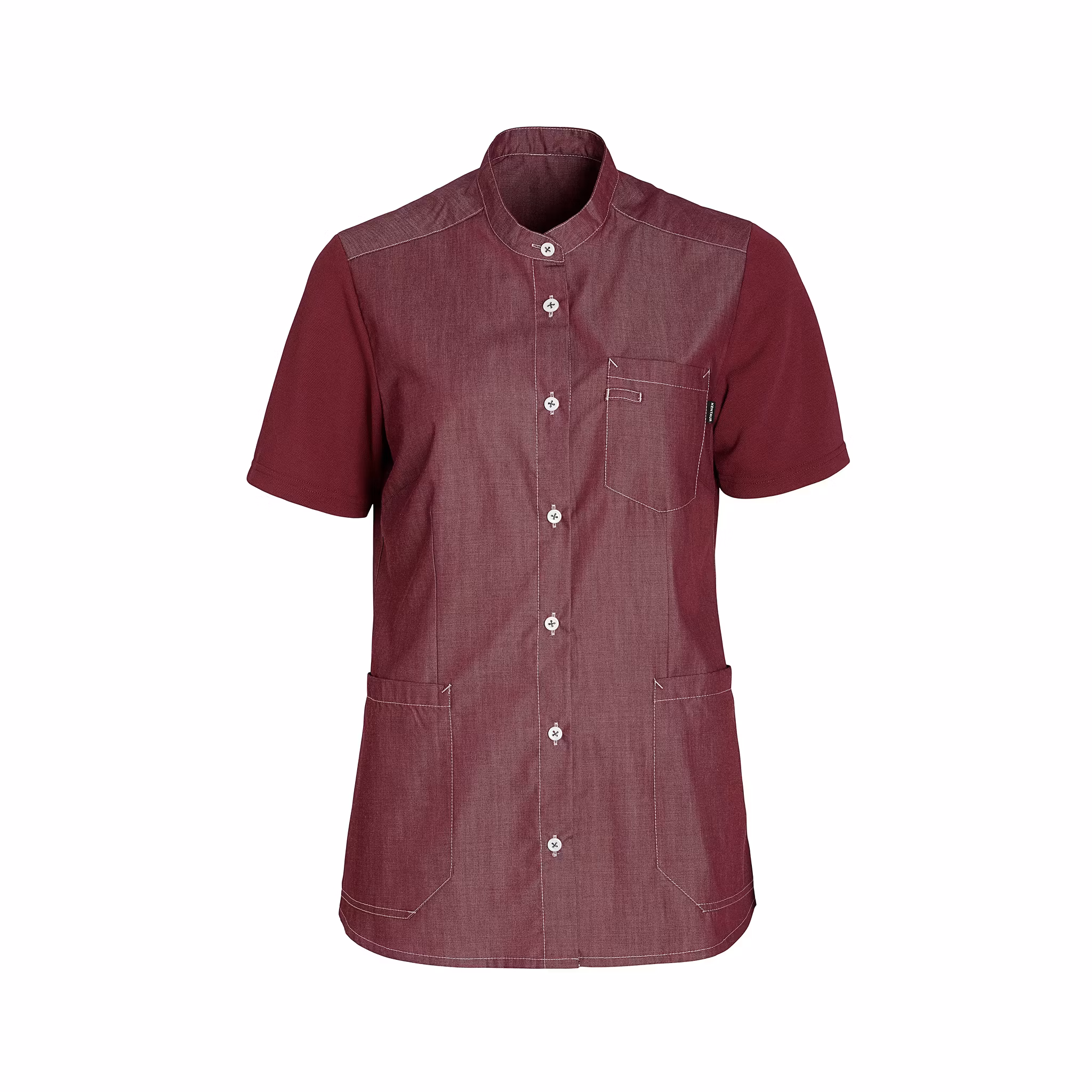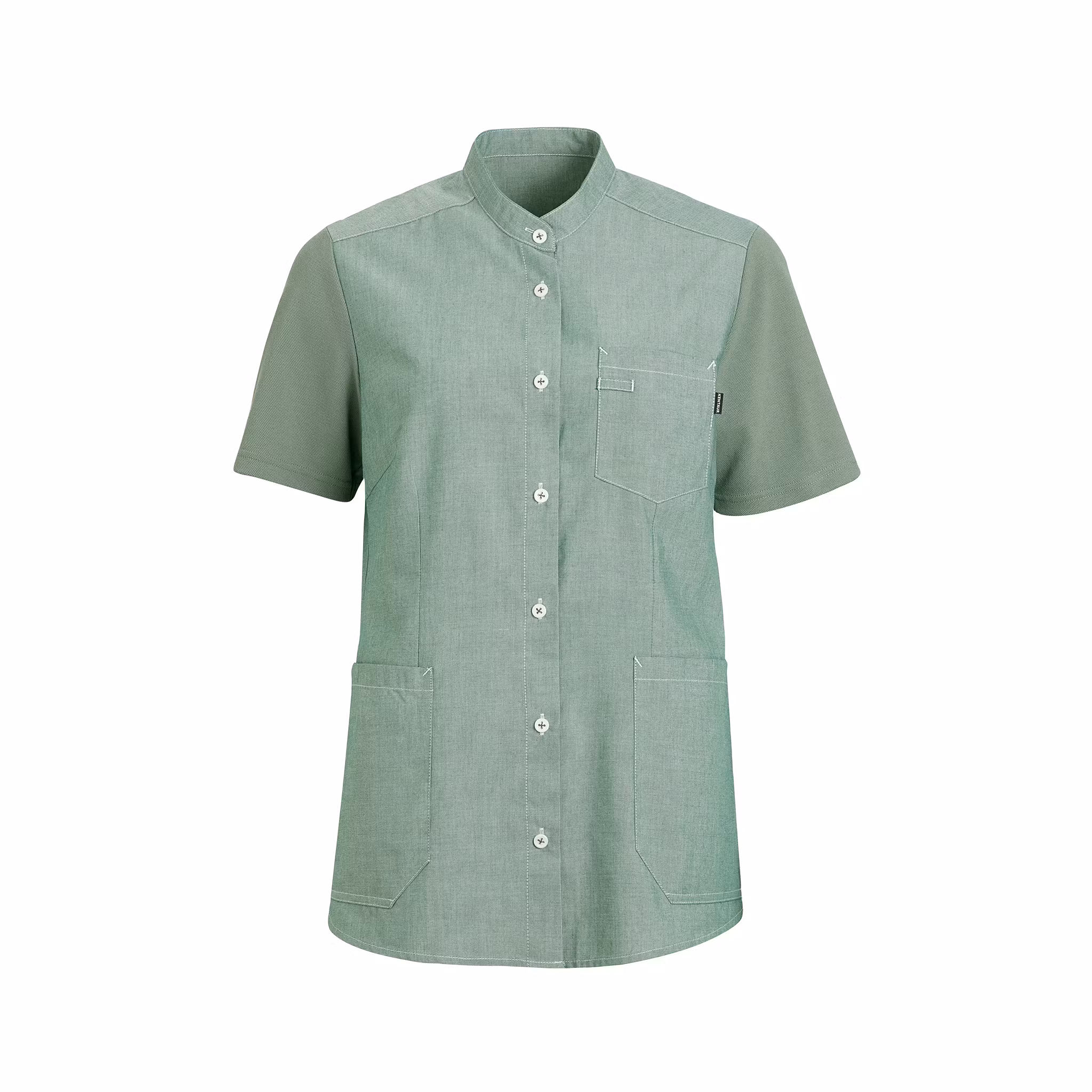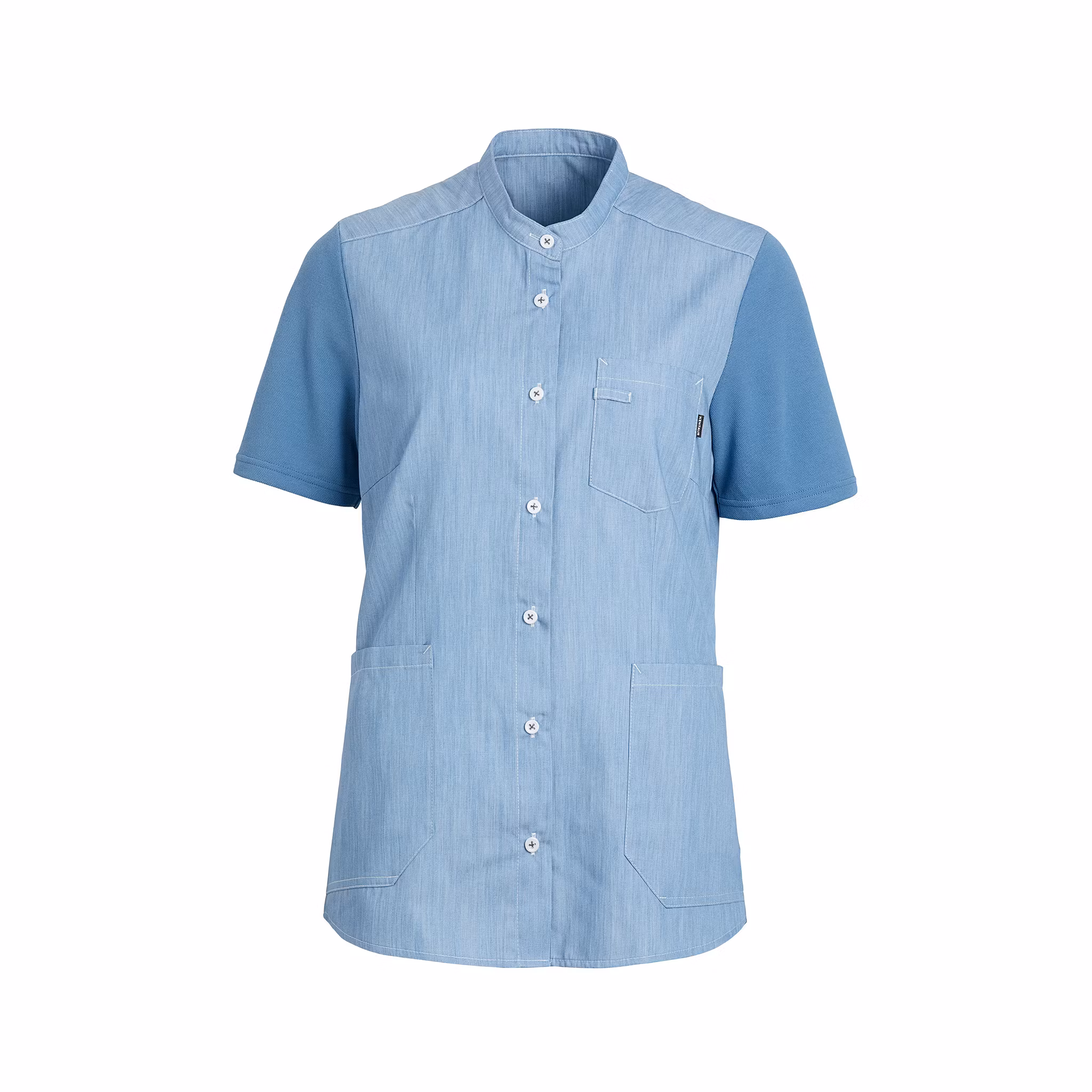 Bekväm och funktionell damskjorta som kombinerar känslan av en mjuk pikétröja med skjortans professionella uttryck. Plagget är utformat för aktiva arbetsdagar inom vård, service och andra yrken där både rörelsefrihet och ett vårdat intryck är viktigt. Ärmar och rygg är tillverkade i följsam piké medan framstycket består av ett vävt tyg som ger struktur och form. Skjortan har ergonomiskt placerade höftfickor, nyckelhällor och praktiska tryckknappar med utseende av klassisk 4-håls knapp. Ett genomtänkt arbetsplagg med fokus på komfort, funktion och hållbarhet.