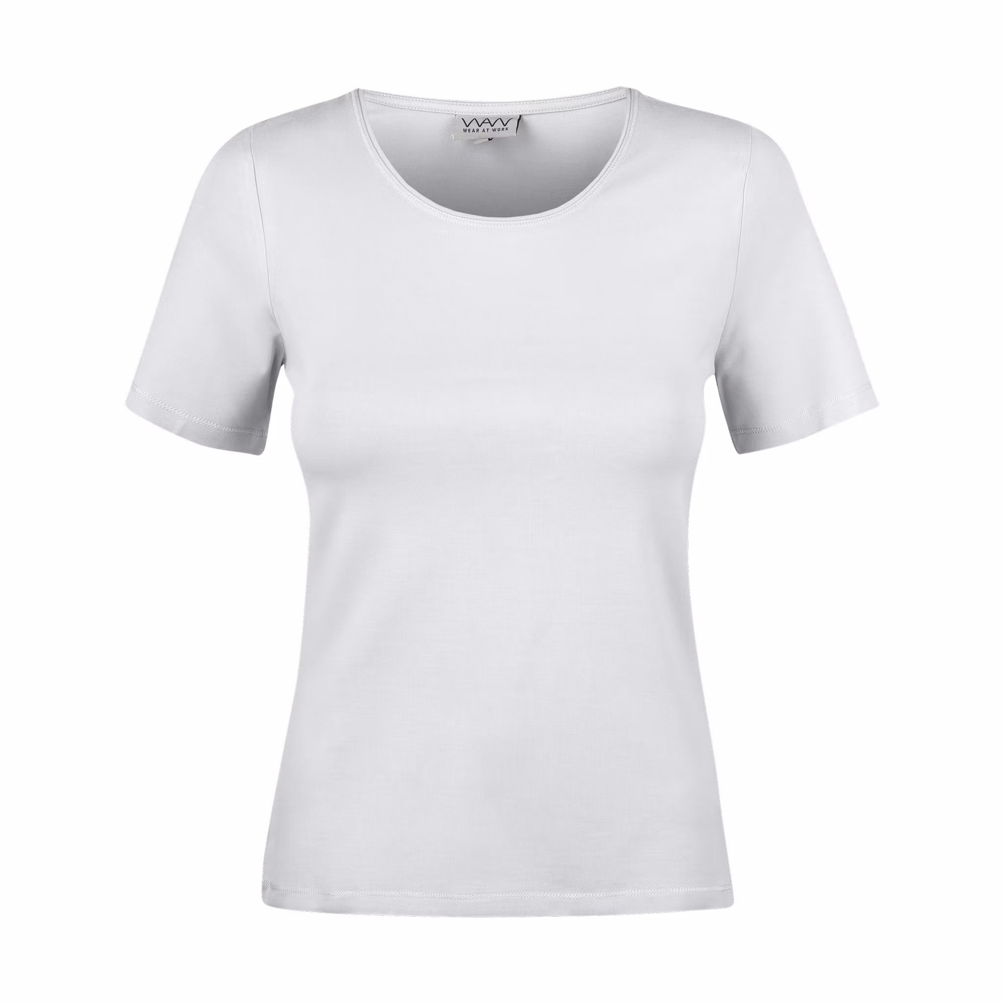 Bekväm och figurnära t-shirt tillverkad i mjuk modal med elastan för extra följsamhet. Materialet har utmärkt andningsförmåga och god fuktabsorption, vilket gör plagget skönt att bära under hela arbetsdagen.