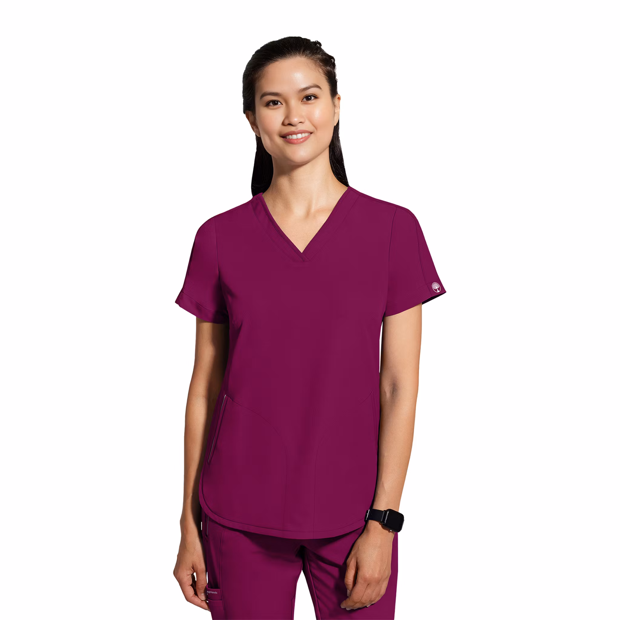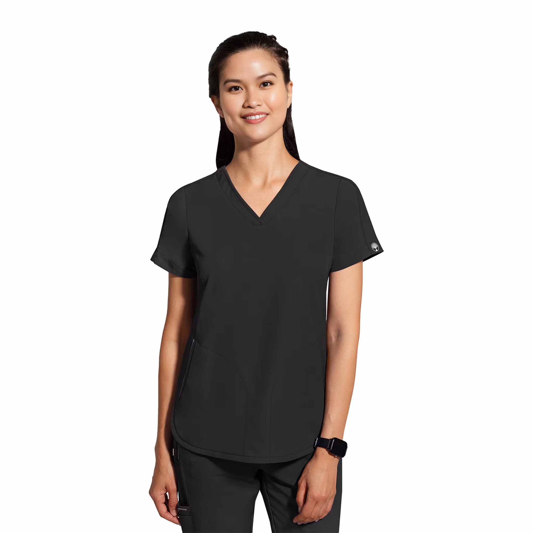 Skyler är en elegant och funktionell vårdtopp med modern passform och en klassisk V-ringning. Modellen har en feminin siluett med figursydda sömmar som ger en smickrande form, samt praktiska sidfickor med dragkedja för säker förvaring av småredskap.