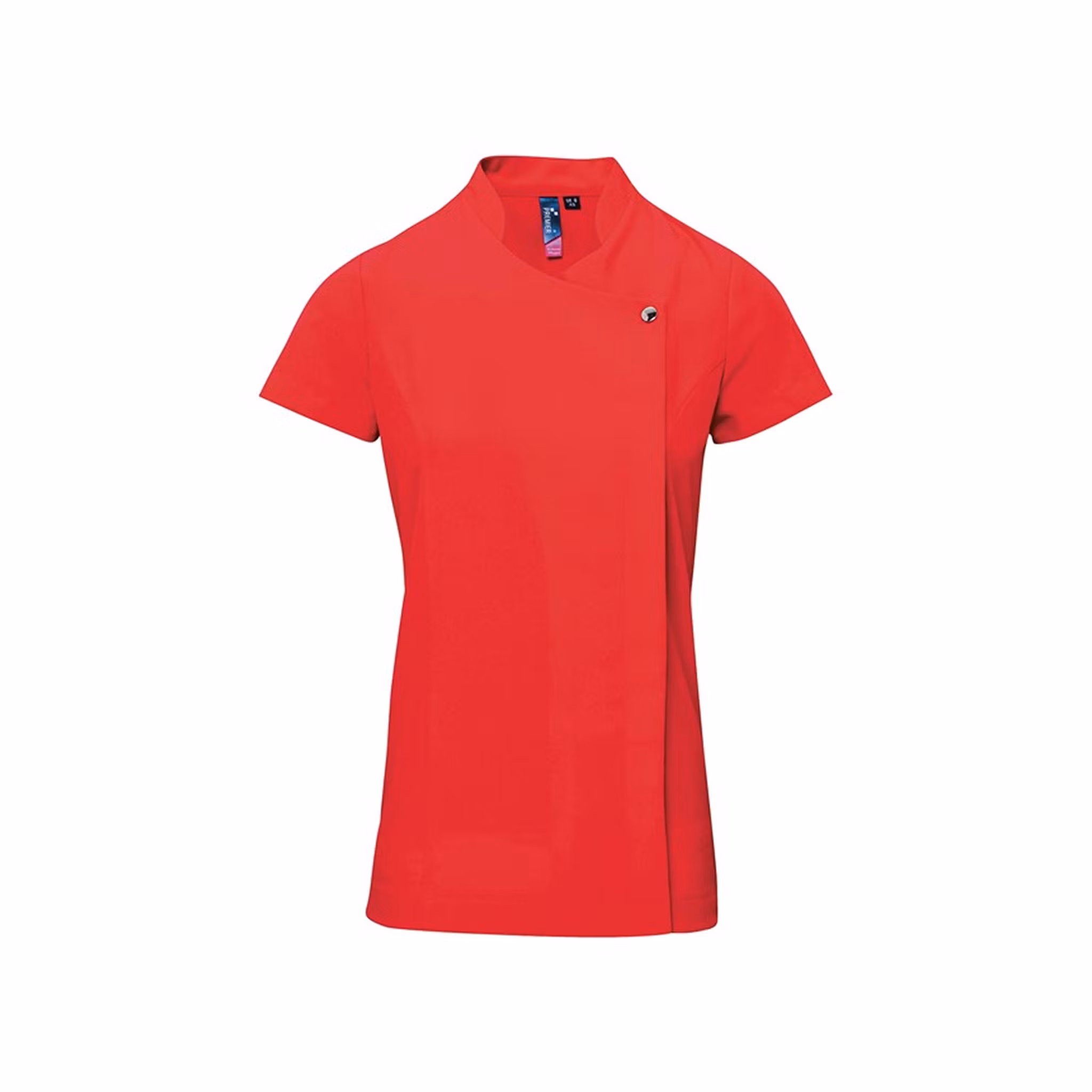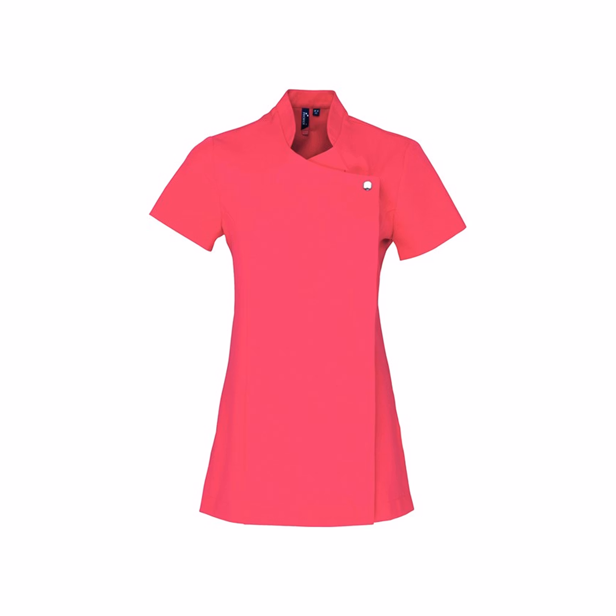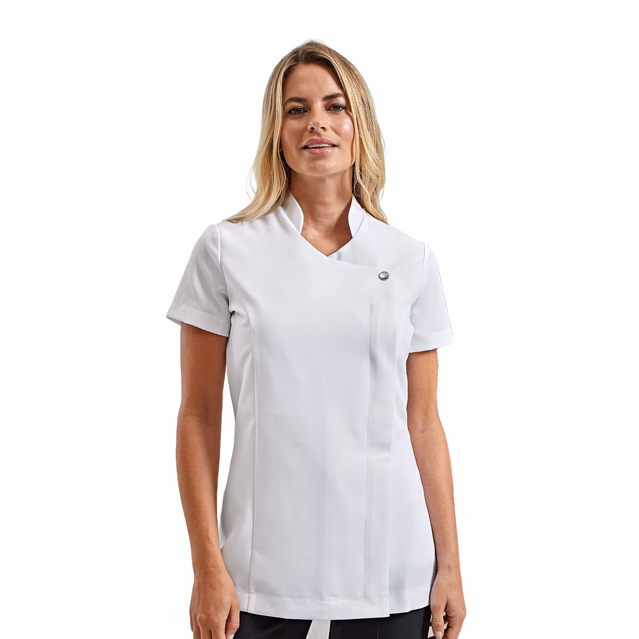 En elegant och funktionell tunika som passar perfekt för arbete inom vård och service. Framtill finns en dekorativ knappstängning med dold dragkedja som ger ett stilrent och professionellt intryck. Tunikan har korta ärmar, figursydd passform med prinsessömmar samt sidoslitsar för ökad rörelsefrihet. Ett veck baktill gör plagget extra följsamt under en aktiv arbetsdag.