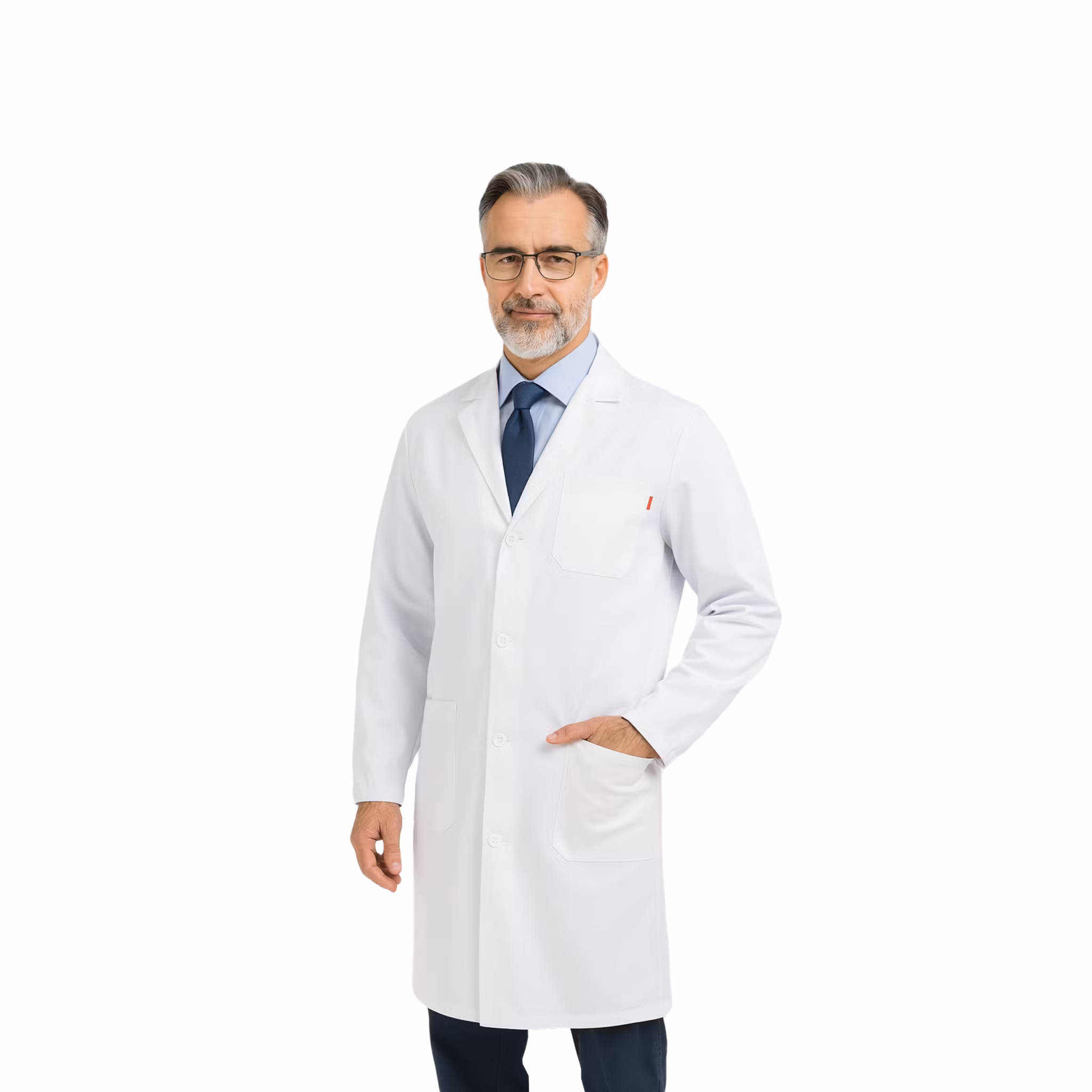 Medicinsk rock framtagen för vårdpersonal, tillverkad i 100% bomullstwill med en vikt på 190 g/m². Rocken har slitsar baktill som ger optimal rörelsefrihet och hög komfort under arbetet. Den stängs med tryckknappar och har elastiska ärmslut för en säker och bekväm passform.