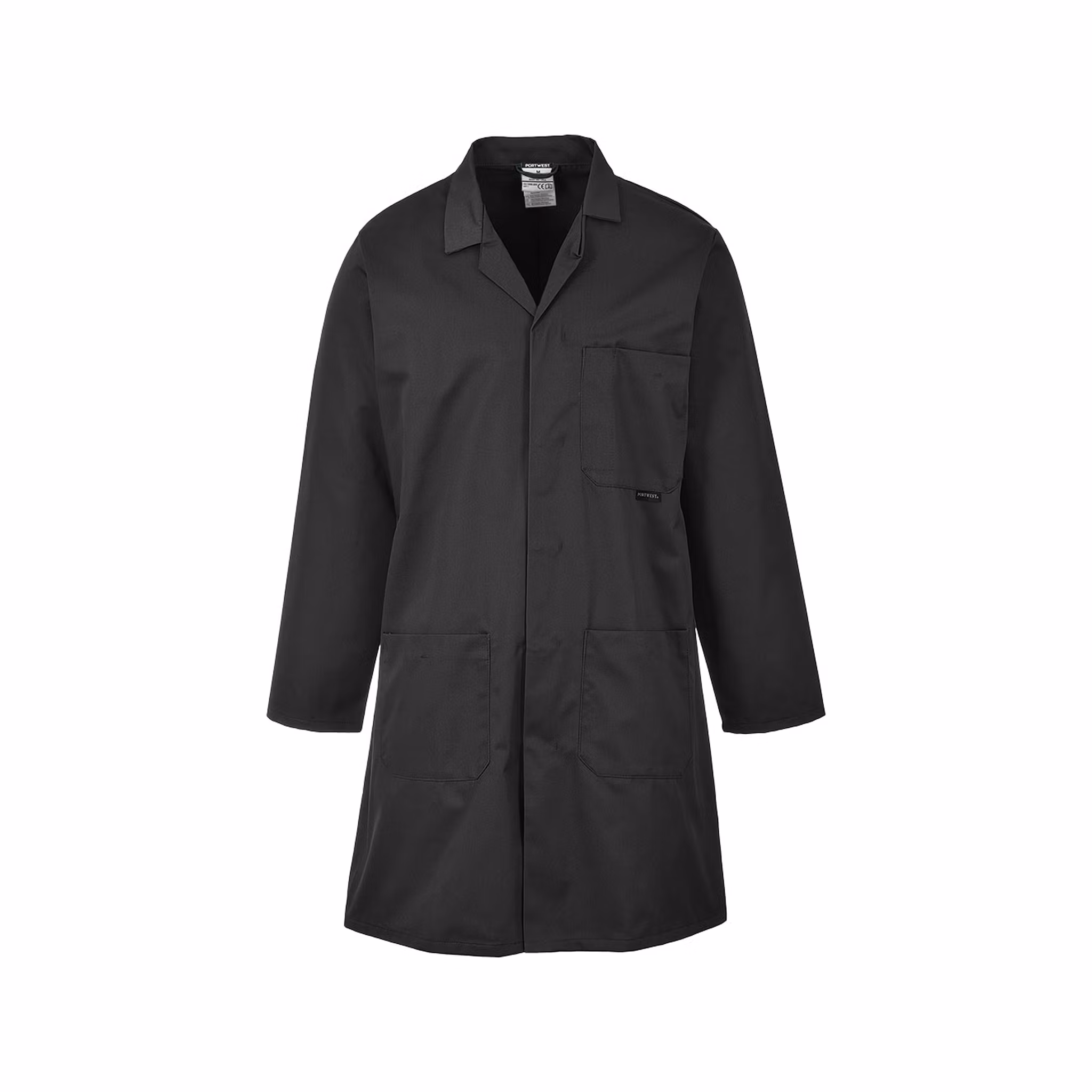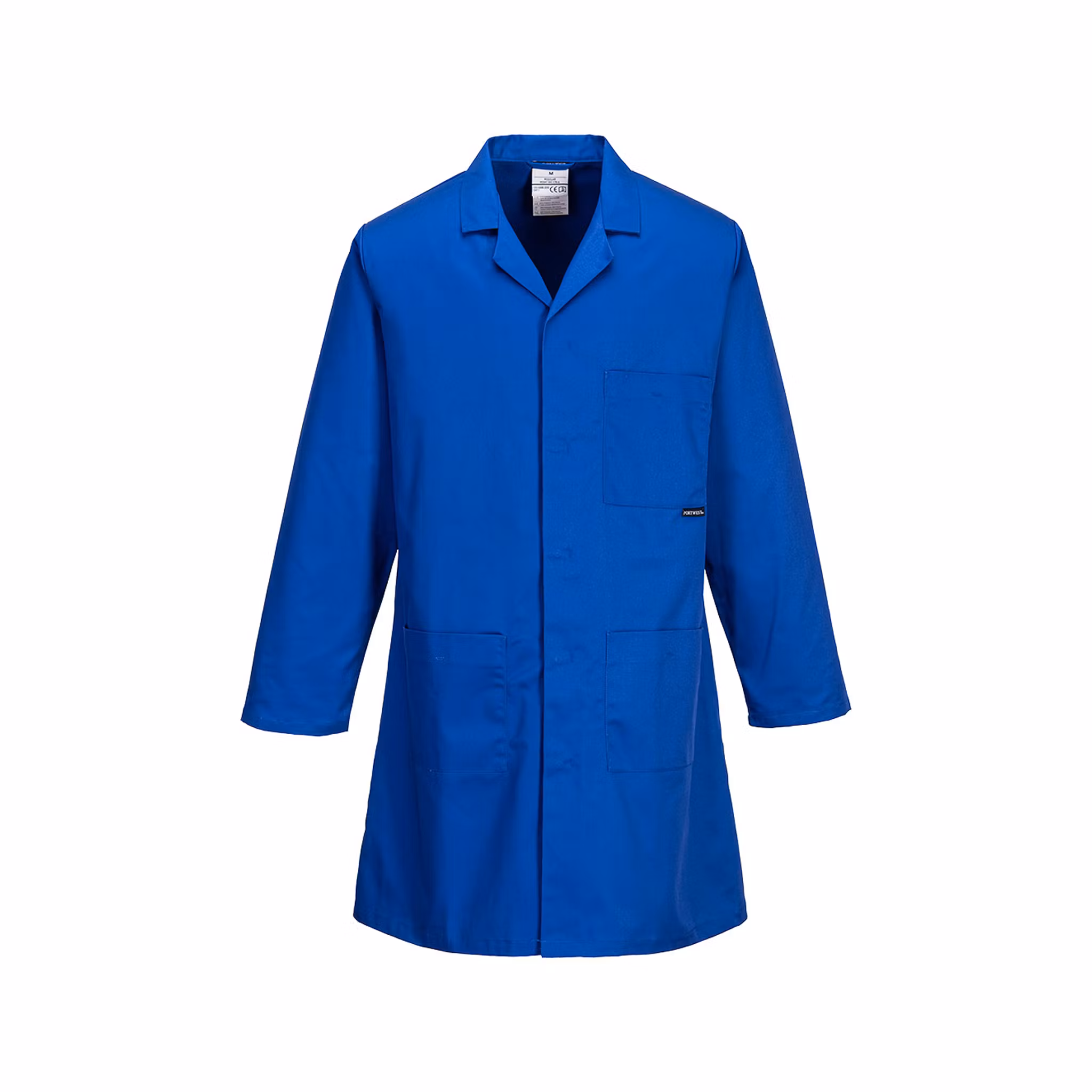 De tre praktiska fickorna – två rymliga nedtill och en bröstficka – erbjuder gott om plats för verktyg, anteckningar eller andra nödvändigheter. Tillverkad i det slitstarka Kingsmill Polycotton-materialet med twillstruktur, som kombinerar bomullens komfort med polyesterens hållbarhet. Tyget är icke-krympande och bibehåller både färg och form tvätt efter tvätt – perfekt för dig som behöver ett pålitligt plagg för dagligt bruk.