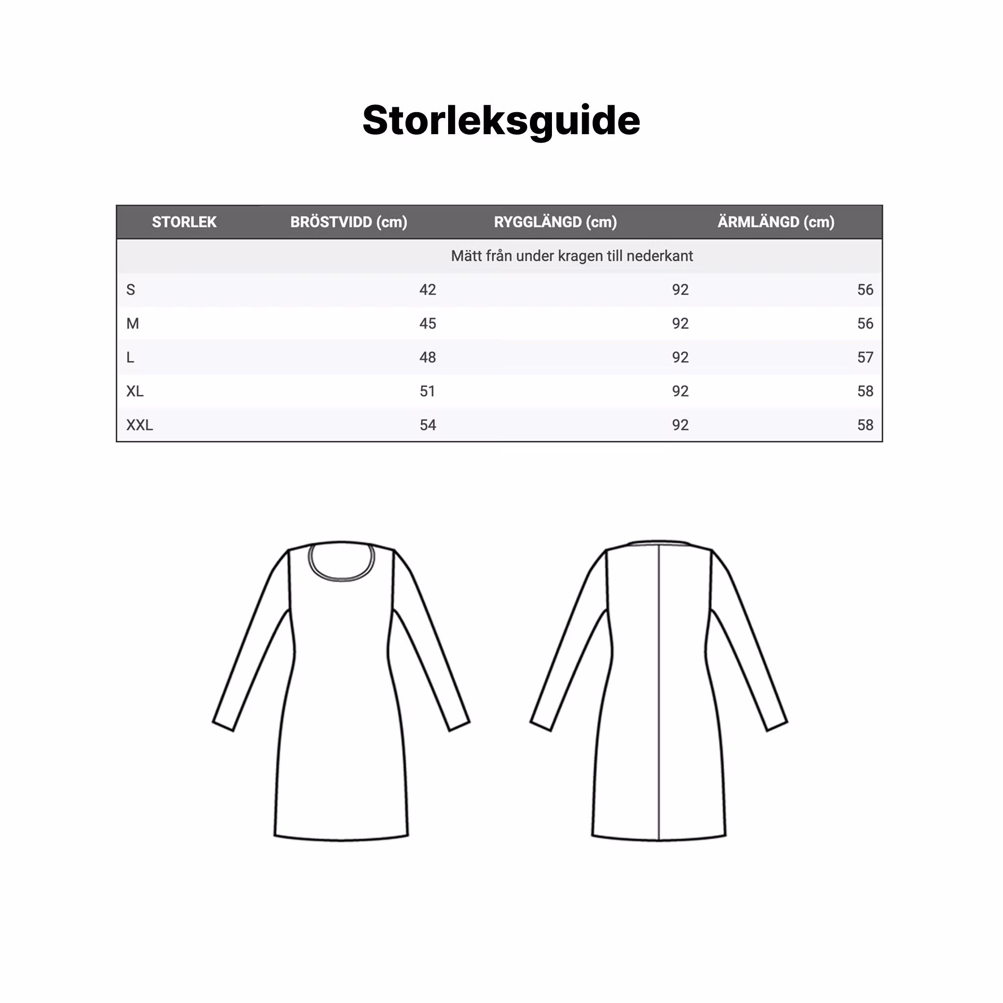 En elegant och bekväm arbetsklänning i svart Jersey Milano-tyg, framtagen för kvinnor som arbetar inom hotell, service, vård eller skönhet. Klänningen kombinerar professionell stil med hög komfort och är särskilt lämpad som uniform för receptionist, städpersonal, vårdpersonal eller spa- och salongsarbete.