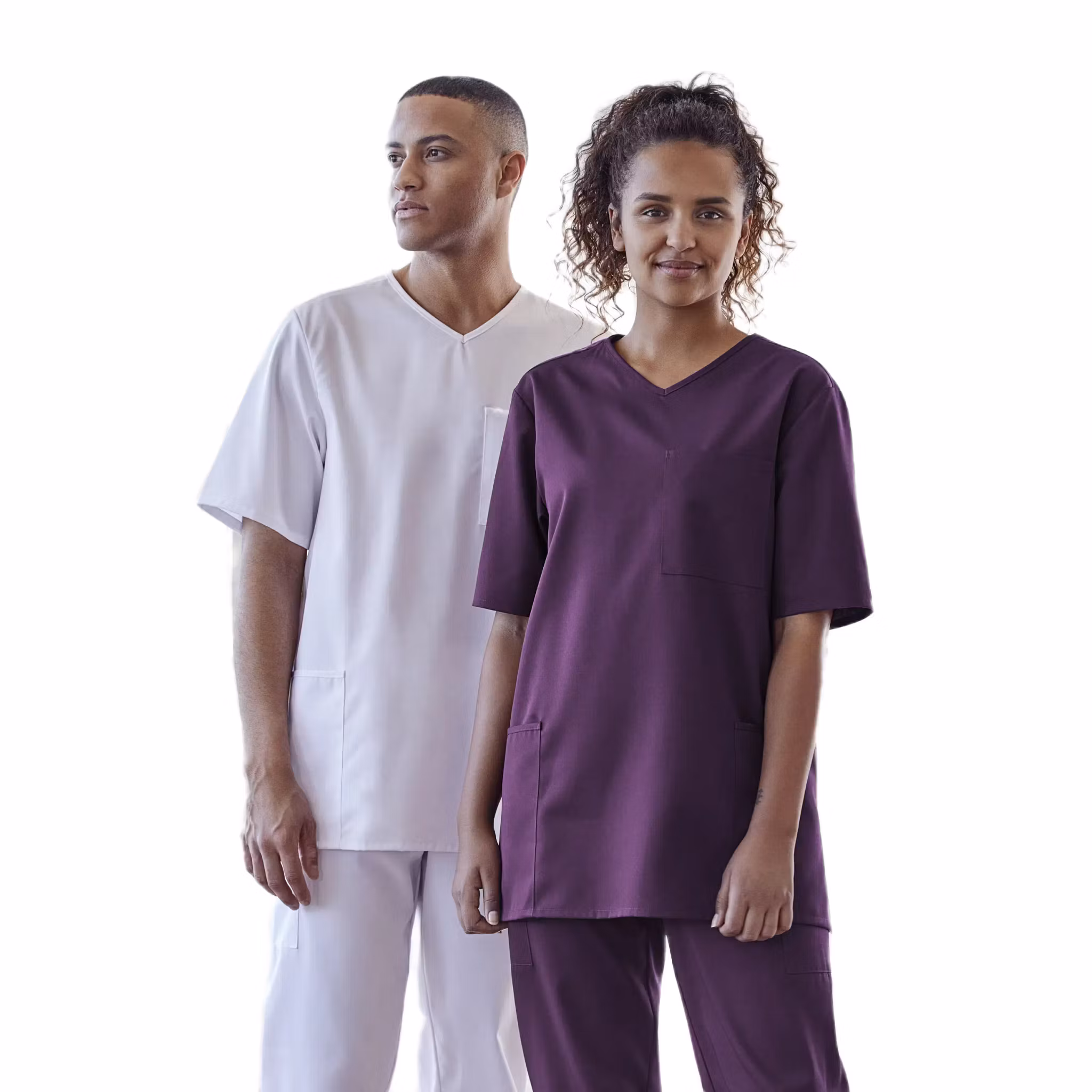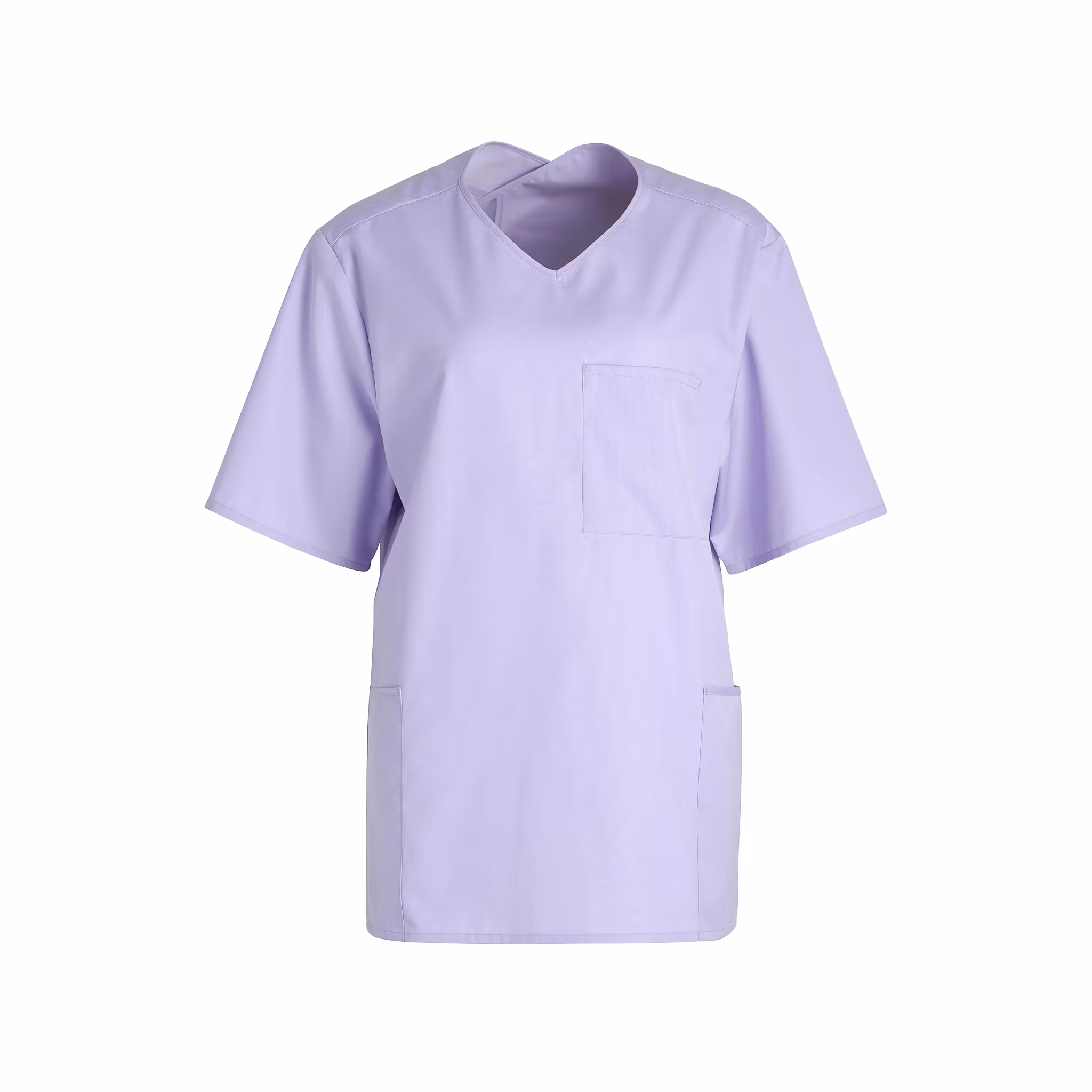 Bekväm och funktionell unisex cross neck top med ergonomisk halsdesign som är utvecklad för att minska belastning på nacke och övre ryggrad. Den registrerade ”Ergonomic Neckline” är utformad för att frigöra halskotan C7 från tryck, vilket kan bidra till att förebygga nacksmärta under långa och aktiva arbetsdagar. Plagget har en mer täckande V-ringning som är enkel att ta på tack vare den genomtänkta skärningen i nacken. Optimerad unisex-passform med A-skärning ger god rörelsefrihet och en bekväm känsla för både män och kvinnor. Ergonomiskt placerade höftfickor och slits i sidan bidrar ytterligare till funktion och komfort.