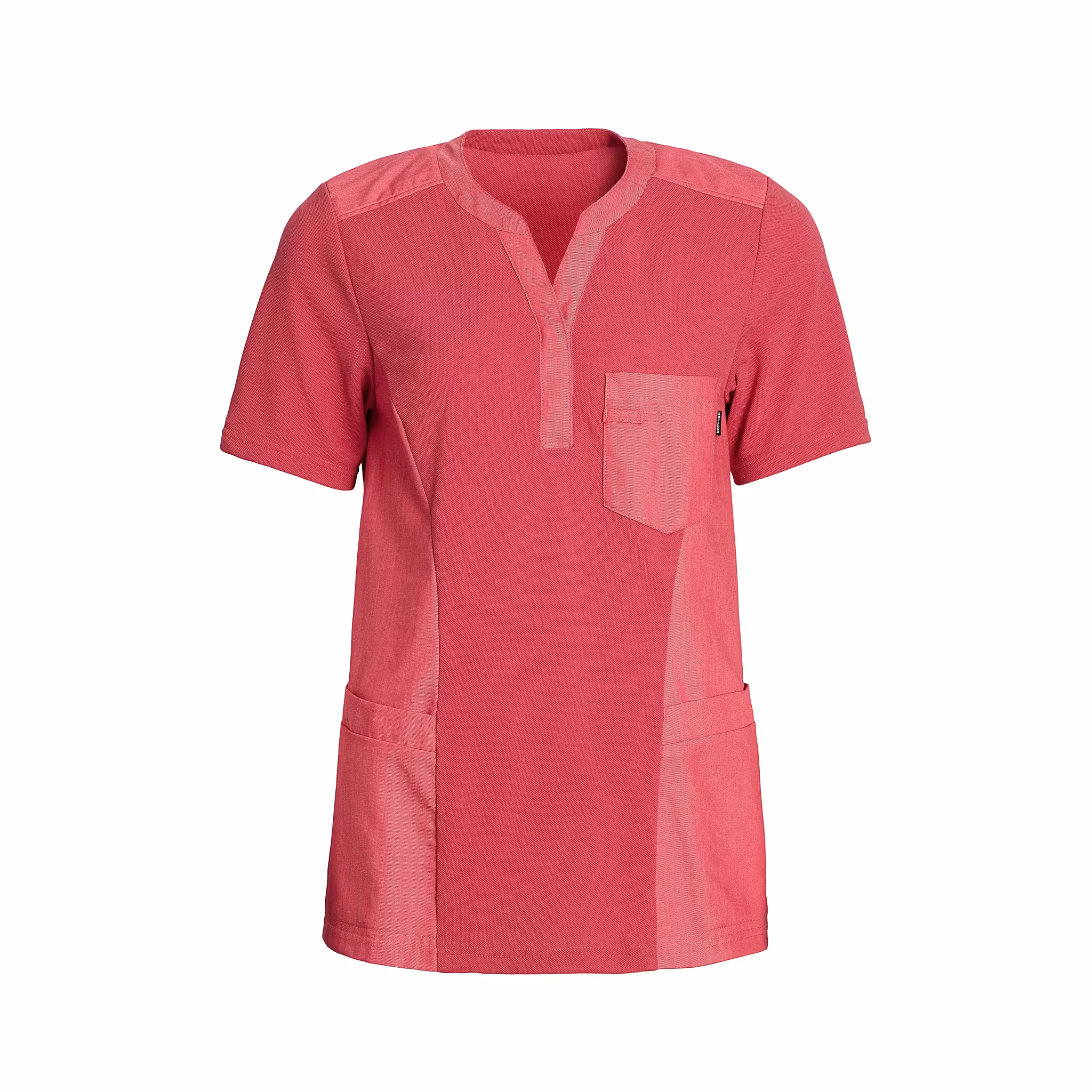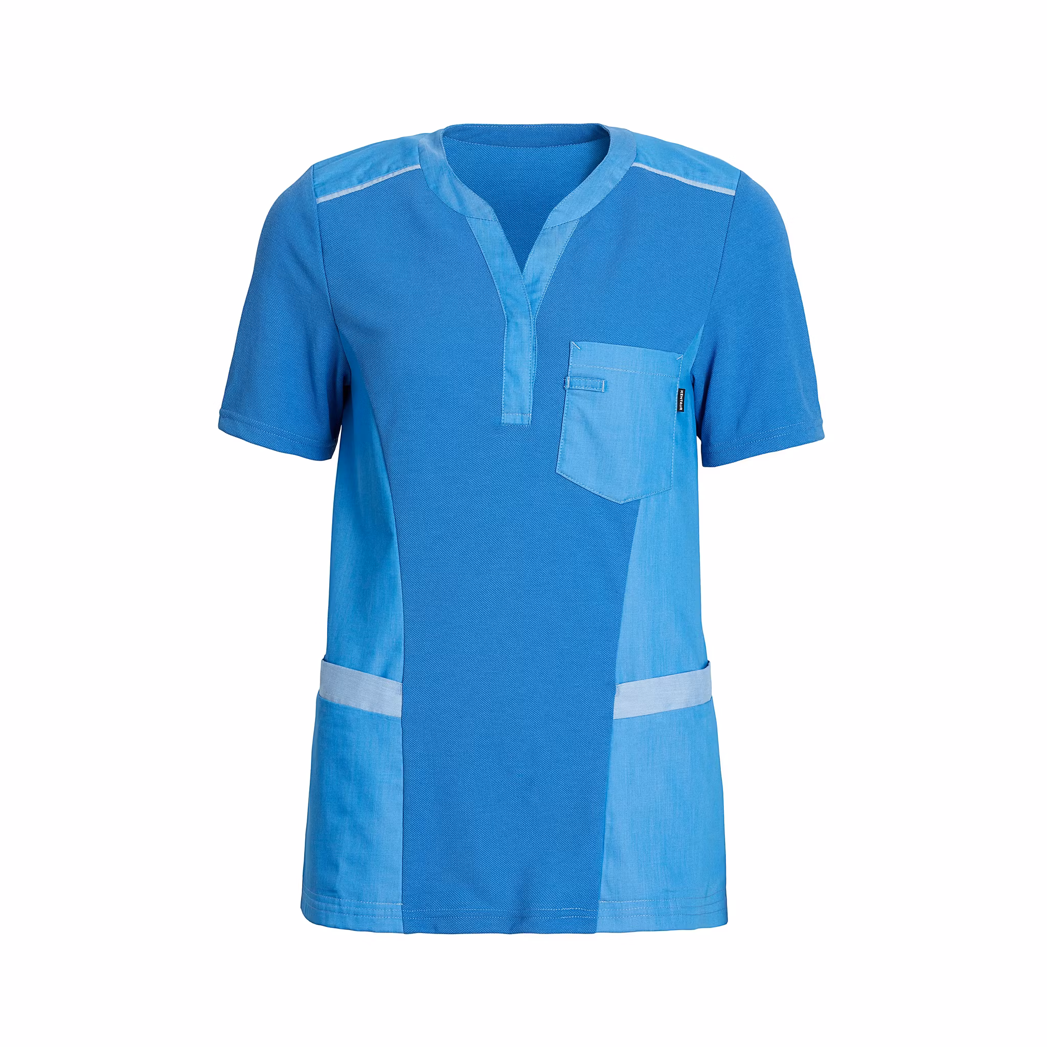Bekväm och funktionell dam piké shirt med V-hals som kombinerar känslan av en klassisk piké med funktionaliteten hos en arbetsskjorta. Tillverkad i en slitstark blandning av polyester och bomull, där vävd kvalitet framtill ger ett professionellt uttryck medan piké i ärm och rygg bidrar till ökad komfort och rörelsefrihet. Modellen har ett avslappnat, casual snitt och är utrustad med praktiska ficklösningar för arbetsdagen. Ett hållbart val som passar väl inom vård, omsorg och serviceyrken.