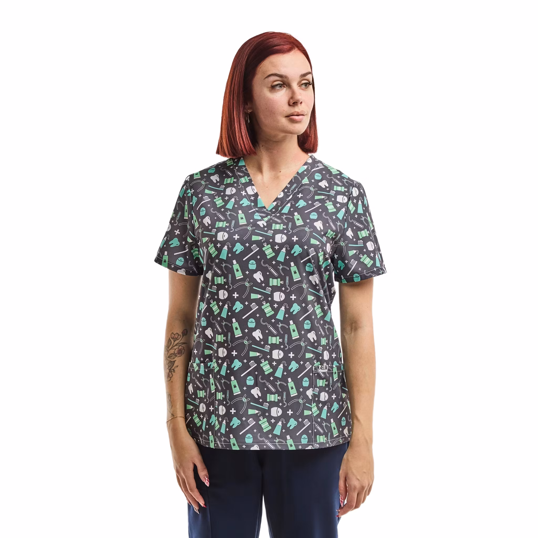 Stretchig medicinsk tunika framtagen för vårdpersonal som behöver en lätt, följsam och bekväm tunika för intensiva arbetsdagar. Det tunna och andningsbara materialet ger hög komfort även under långa pass, samtidigt som stretchkvaliteten säkerställer god rörelsefrihet i alla moment. Blusen är tillverkad i en slitstark polyesterblandning med elastan, vilket gör den både formstabil och lättskött. Tyget behåller sin kvalitet och passform även efter upprepad tvätt, vilket gör den väl lämpad för daglig användning inom vård, klinik och omsorg. Den ergonomiska passformen är utformad för att sitta bekvämt utan att strama och passar olika kroppstyper. Ett praktiskt val för dig som vill kombinera funktion, komfort och ett professionellt uttryck i arbetet.