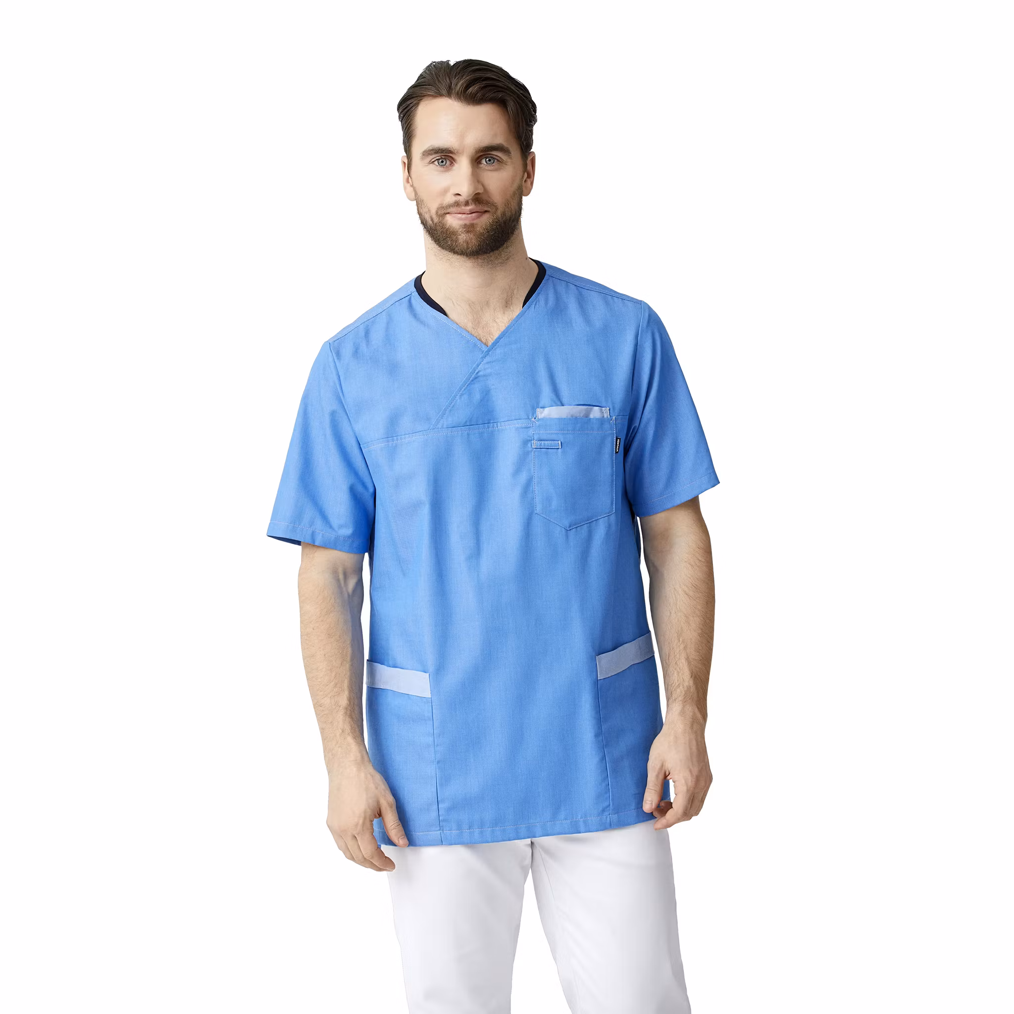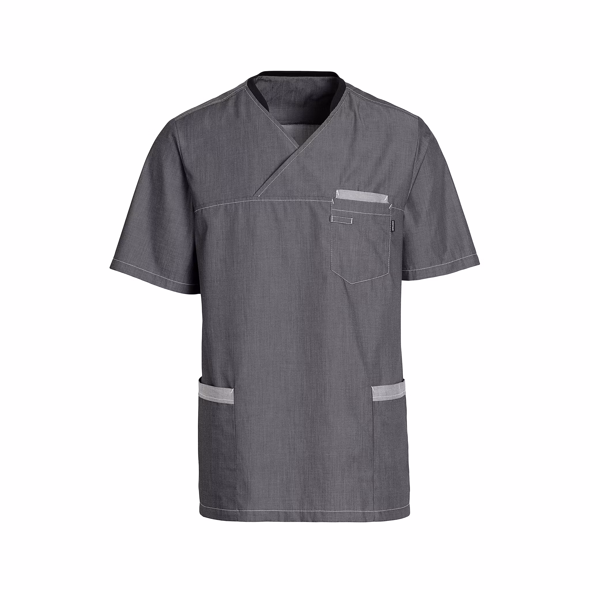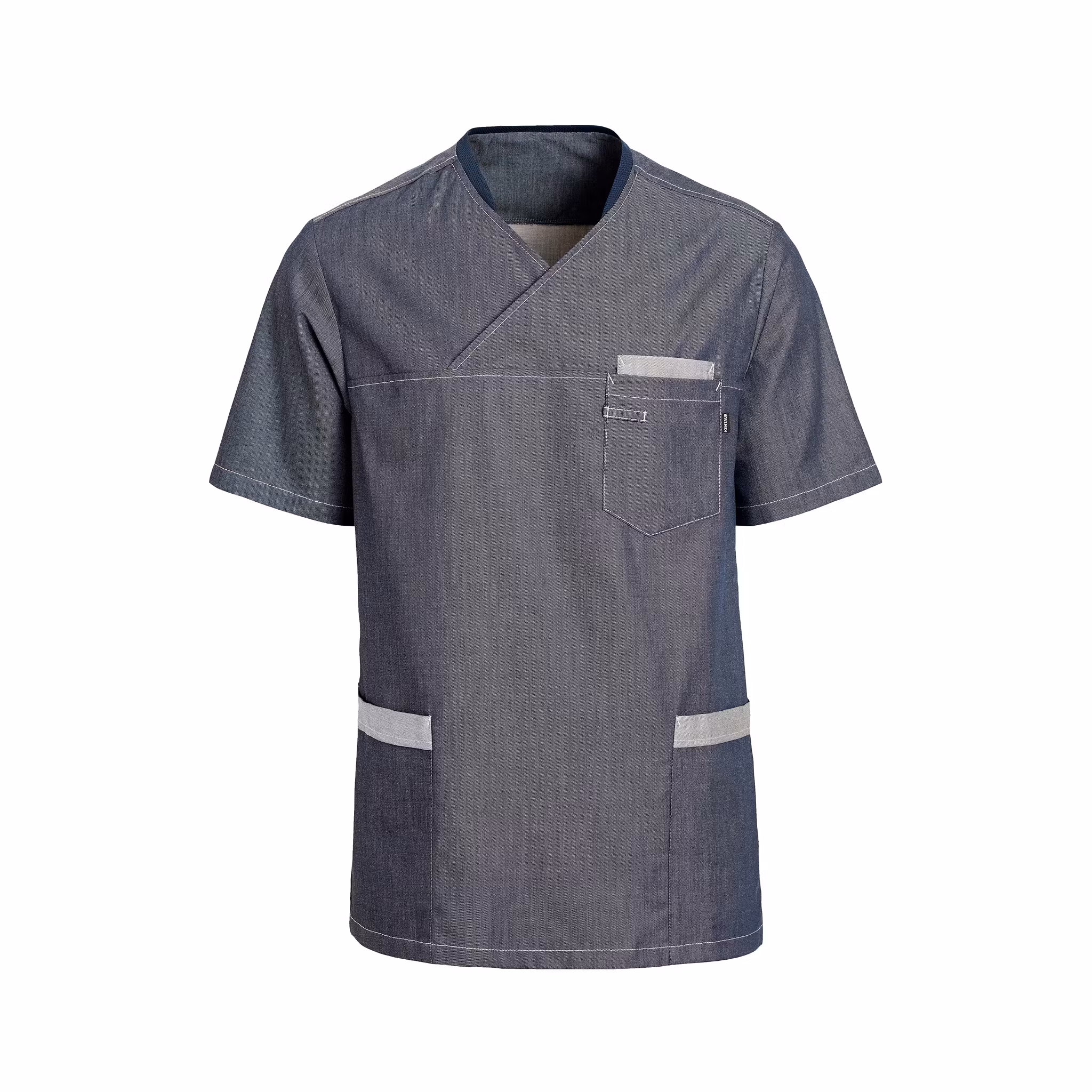 Bekväm och funktionell unisex halvbussarong utvecklad för intensiva arbetsdagar där rörelsefrihet och praktiska detaljer är avgörande. Tillverkad i ett lätt och slitstarkt polycotton-material med återvunnen polyester från PET-flaskor, kombinerat med andningsbar stretch- och jersey i rygg och under ärmar för ökad komfort. Bussarongen har en mjuk kinakrage i kontrastjersey, ergonomiskt placerade höftfickor med dold tryckknappsstängning samt invändiga mobilfickor och nyckelhällor för säker förvaring. En dubbel bröstficka, ID-rem och invändig midjejustering i ryggen bidrar till både funktion och passform, medan slits i sidan ger extra rörlighet. Passar både män och kvinnor.