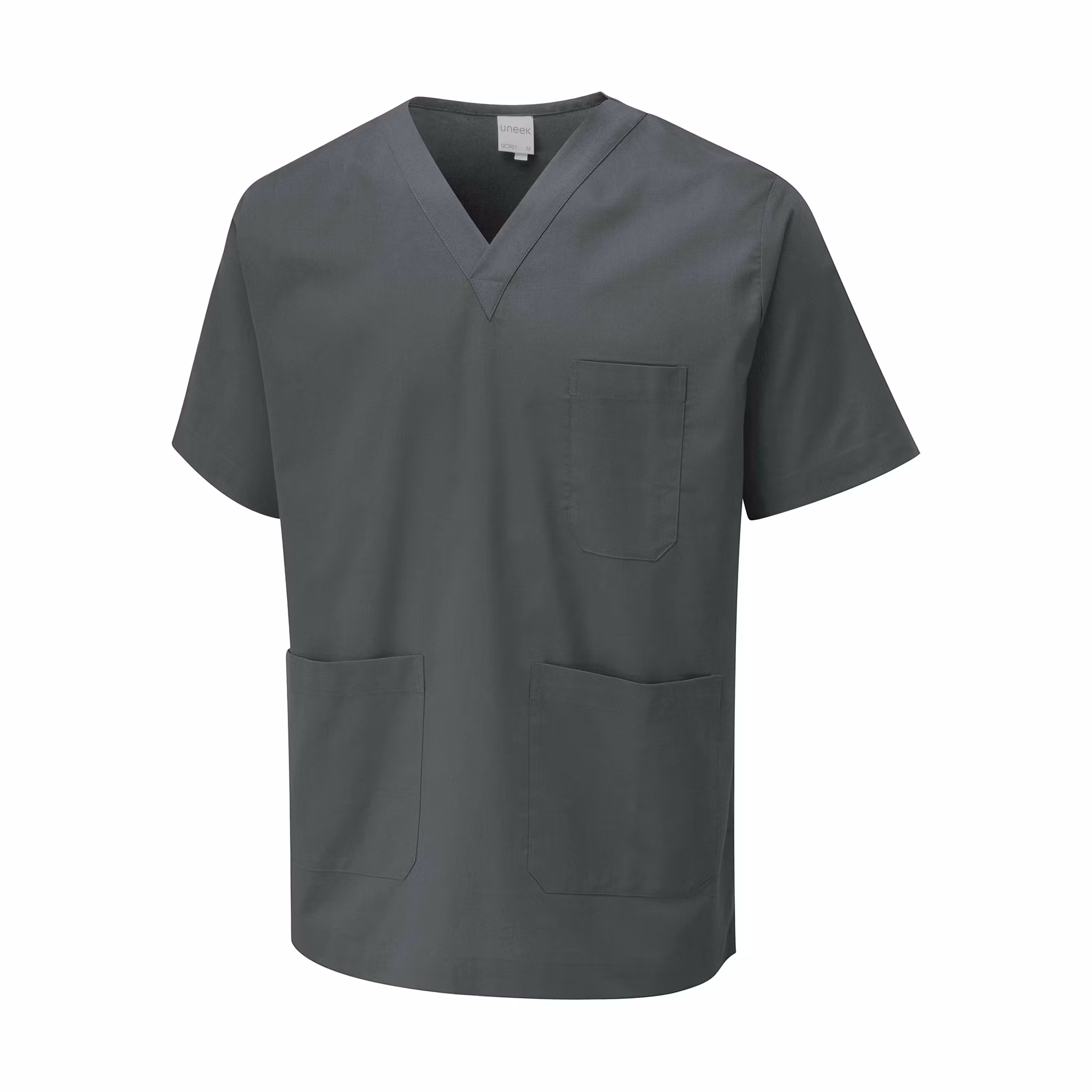 Detaljer: V-ringning, regular fit, bröstficka på vänster sida, två patchfickor framtill, kan bäras som set tillsammans med matchande byxor (Vårdbyxa i polyester & bomull | Uneek)