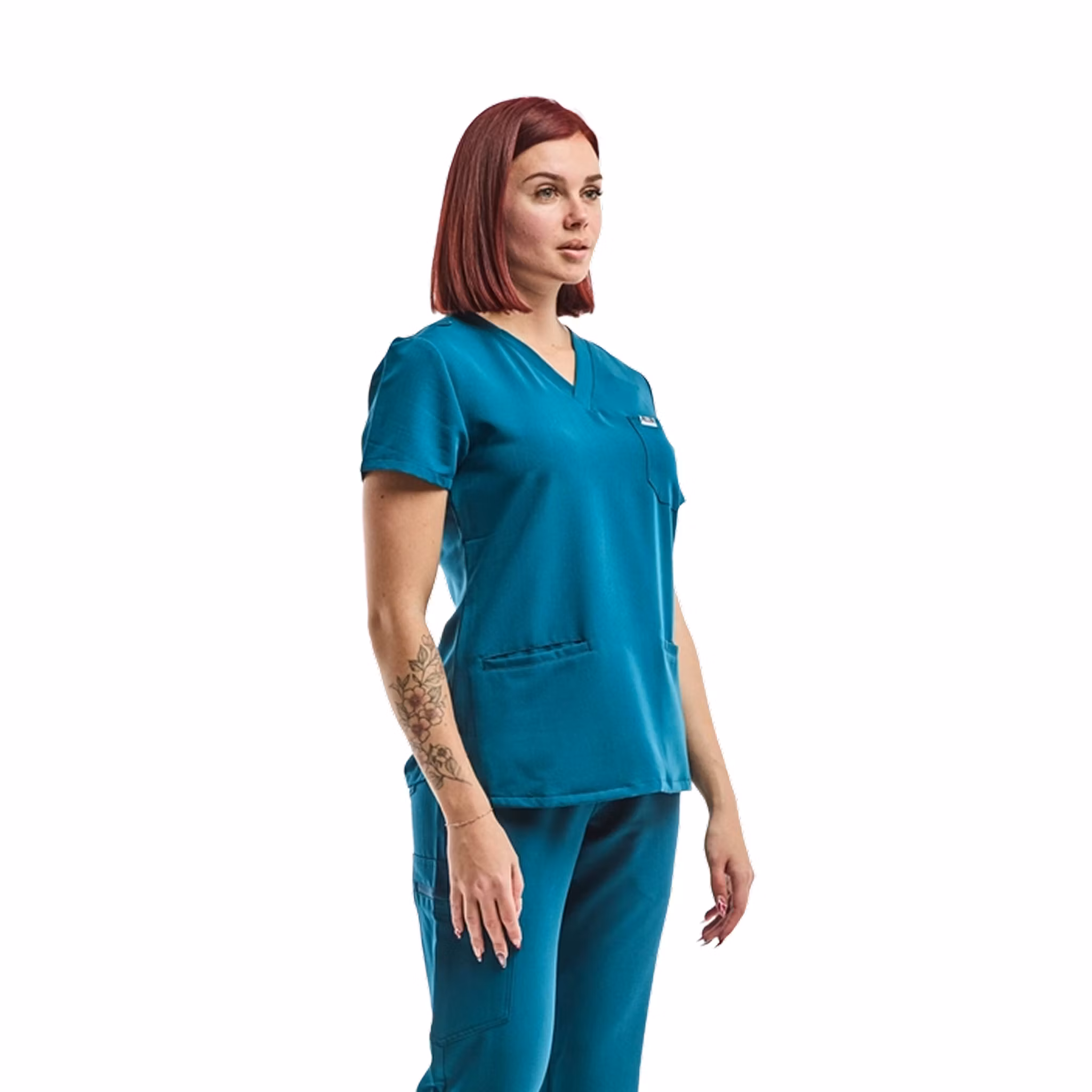 Funktionellt och bekvämt vårdset framtaget för arbete inom vård, tandvård och klinikmiljöer. Kombinationen av tunika och byxor ger ett enhetligt, professionellt uttryck samtidigt som plaggen är utformade för hög komfort och god rörelsefrihet under långa och intensiva arbetsdagar. Det mjuka och följsamma 4-vägsstretchmaterialet ger en behaglig passform och bidrar till god ventilation under hela arbetspasset. Tunikans V-ringning ger ett rent och tidlöst uttryck samtidigt som den underlättar rörelse och komfort i vardagen, medan byxorna är designade för flexibilitet och naturlig följsamhet i varje steg.