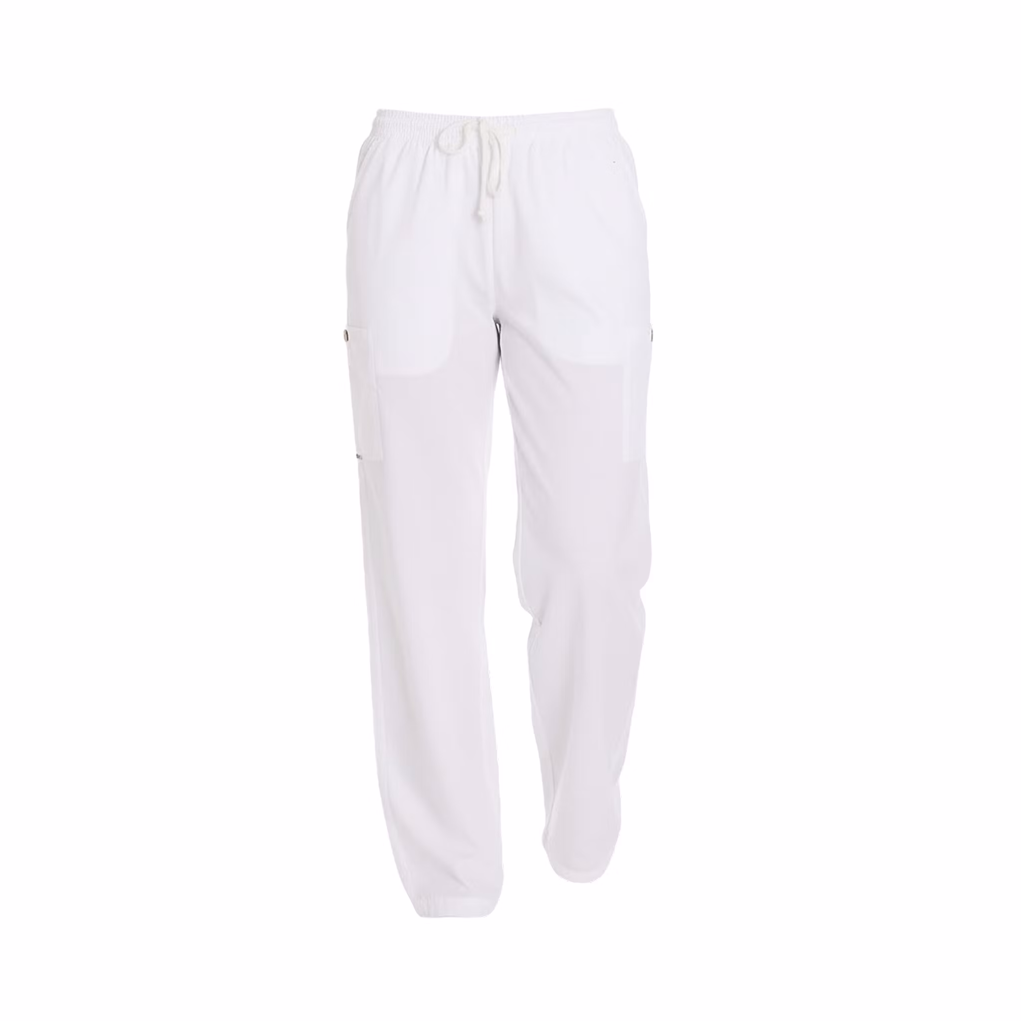 Byxan har elastisk midja med dragsko för flexibel passform och är utrustad med praktiska sidfickor samt en benficka som ger enkel åtkomst till redskap och mindre tillbehör. Tunikan har V-ringning och kort ärm, med tre funktionella fickor: två framfickor för dagliga arbetsverktyg och en bröstficka för snabb åtkomst. Tillsammans skapar plaggen en lätt, luftig och funktionell helhet som kombinerar komfort med praktisk förvaring.