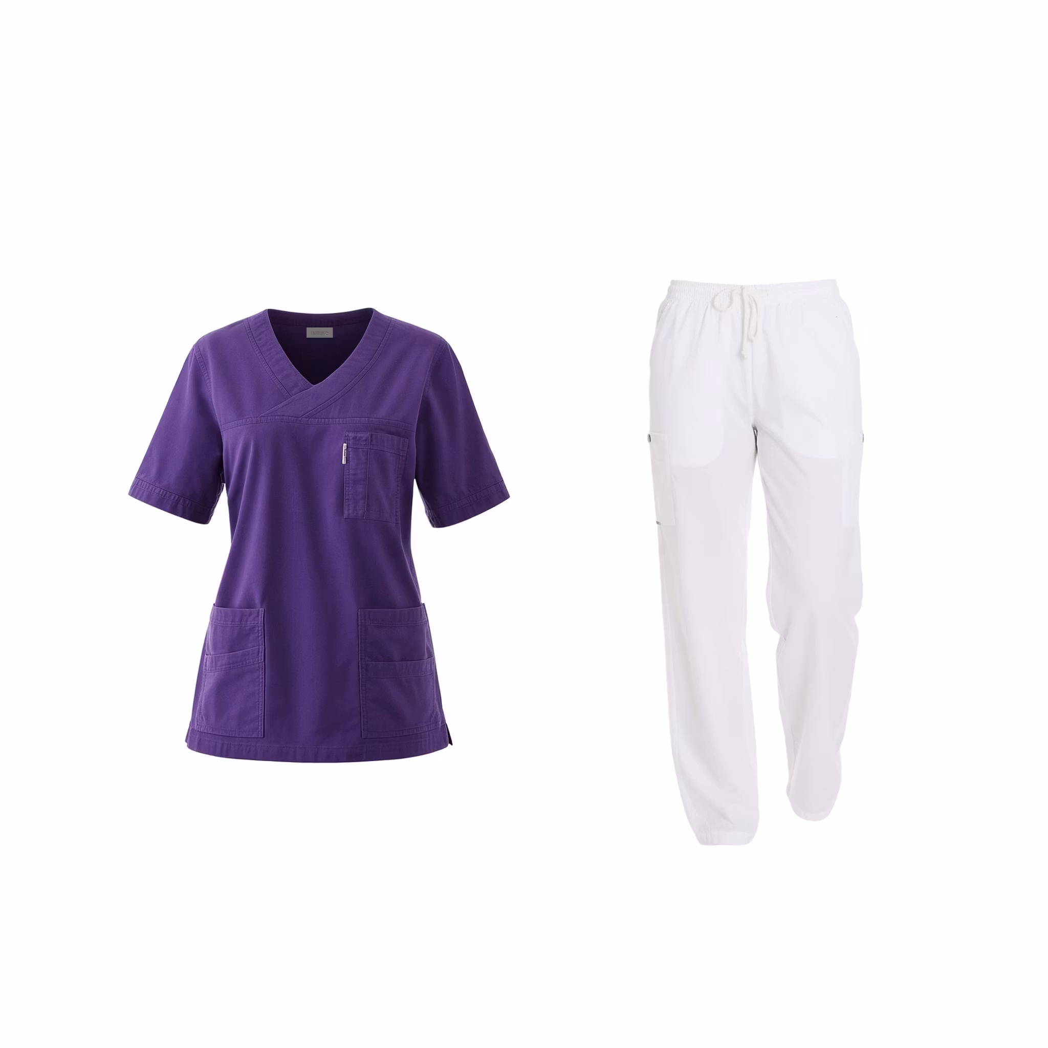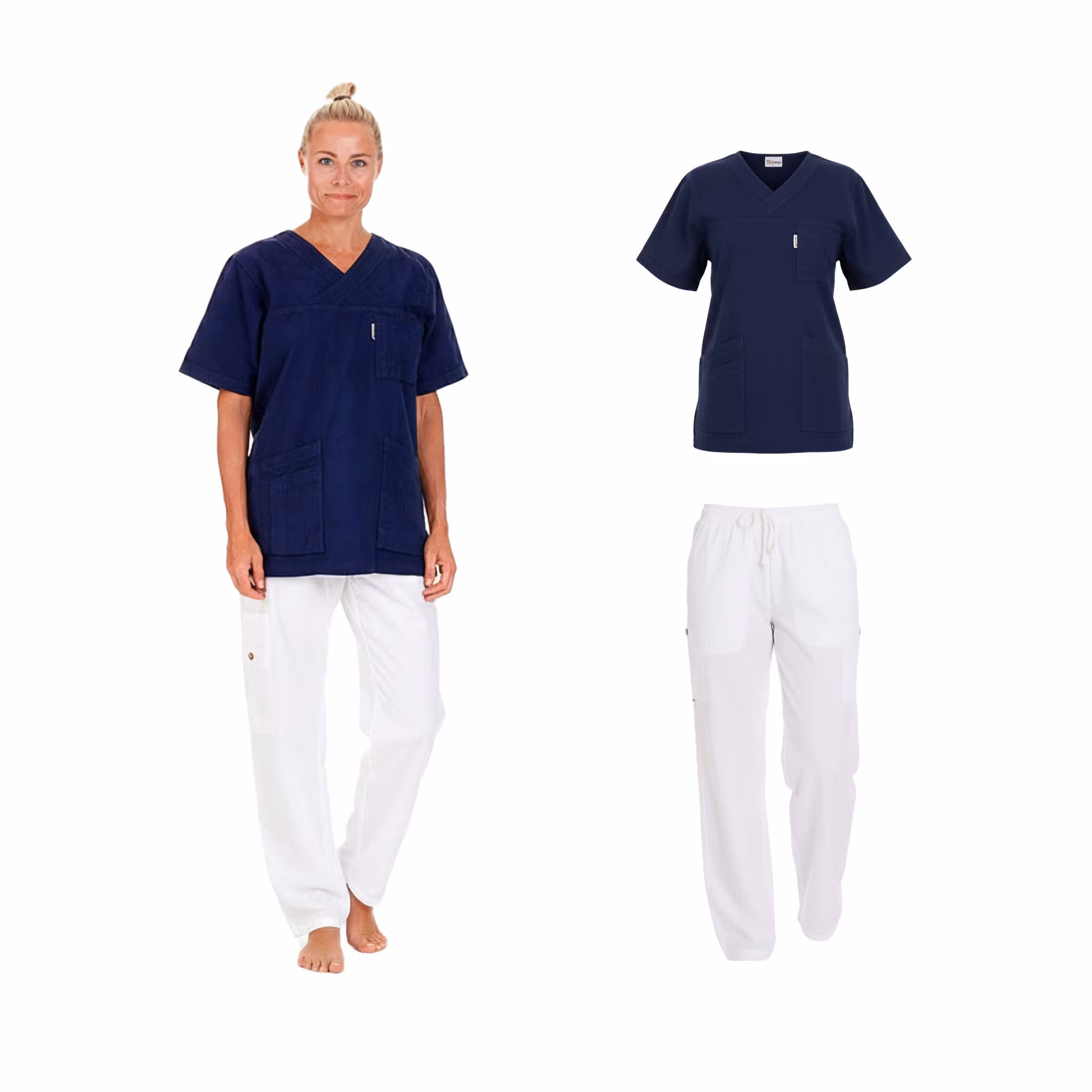 Ett komplett och bekvämt vårdset i 100% krinklad bomull, bestående av en luftig arbetsbyxa och en följsam tunika. Materialet är mjukt, andas väl och är skönt att bära även under långa arbetspass. Setet erbjuder hög komfort och rörelsefrihet, vilket gör det särskilt uppskattat av vårdpersonal med aktiva arbetsdagar.